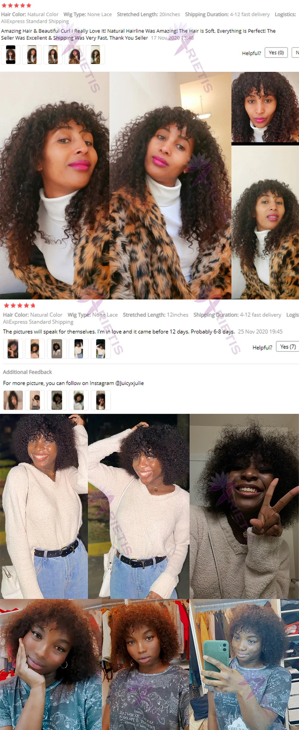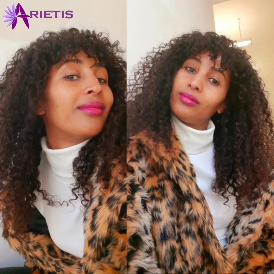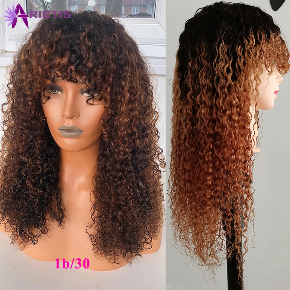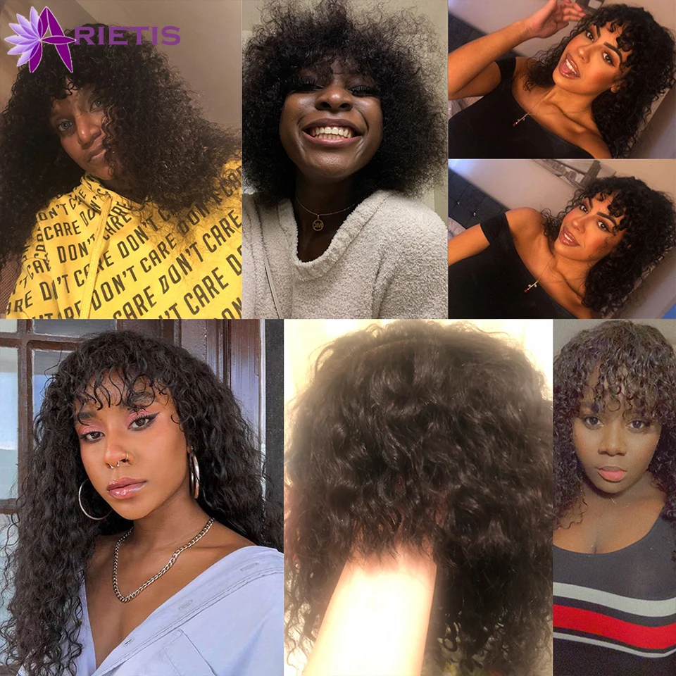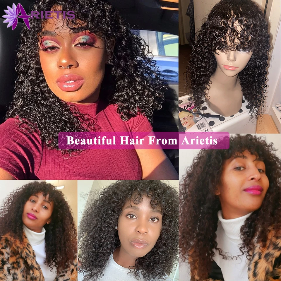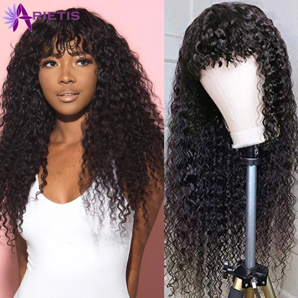 Парики из натуральных малазийских кудрявых волос с челкой, парики из натуральных волос Реми для чернокожих женщин, полностью машинный парик 8-24 дюйма, быстрая доставка