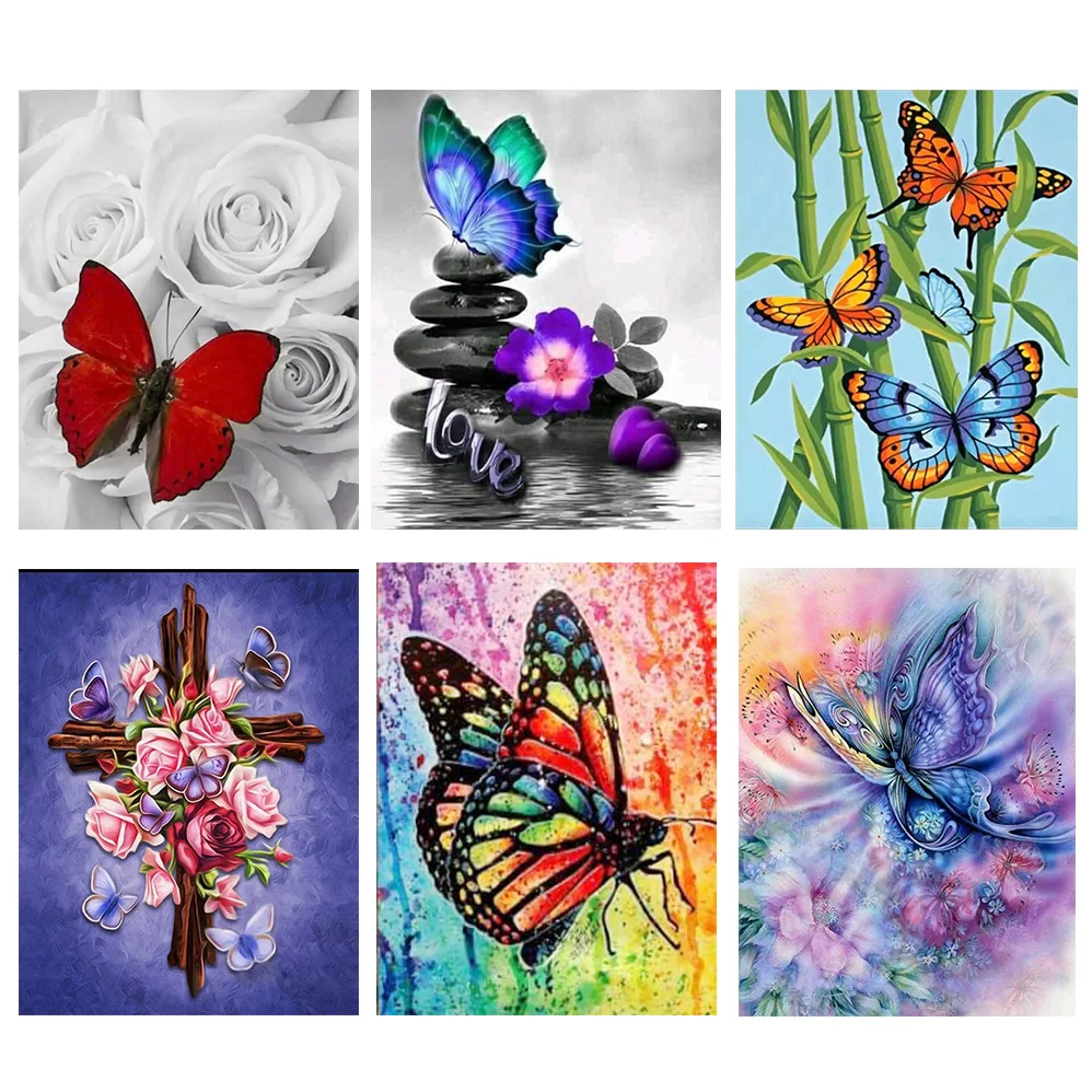 Алмазные картины 5D "сделай сам", красочные бабочки, узоры для вышивки, домашний декор, наборы для 3d вышивки крестом, пейзажные наклейки
