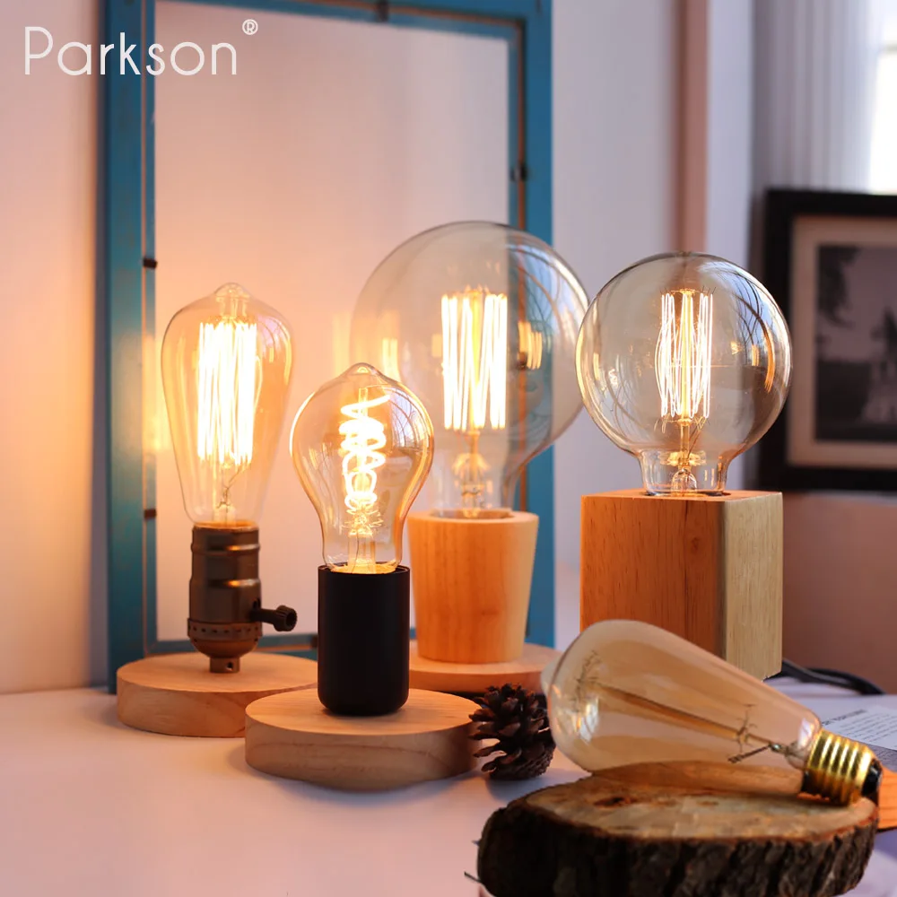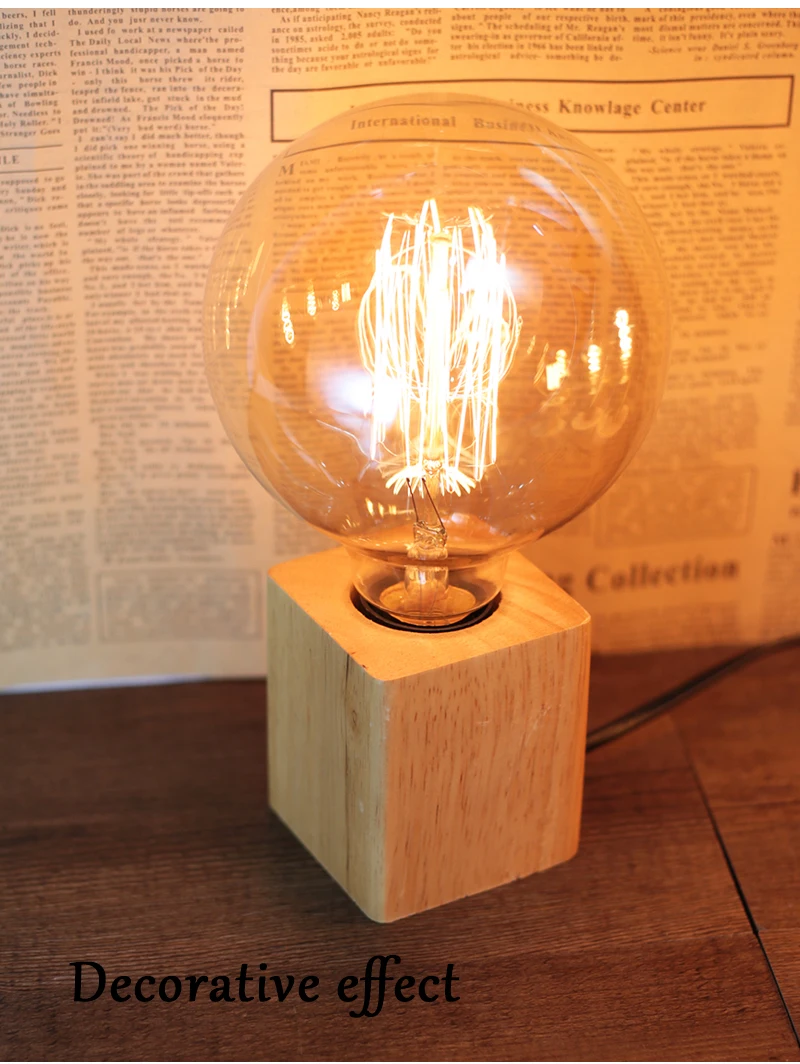 Современная Деревянная настольная лампа E27 в стиле ретро, настольная лампа с деревянной розеткой, искусство в винтажном стиле, прикроватный ночник для спальни