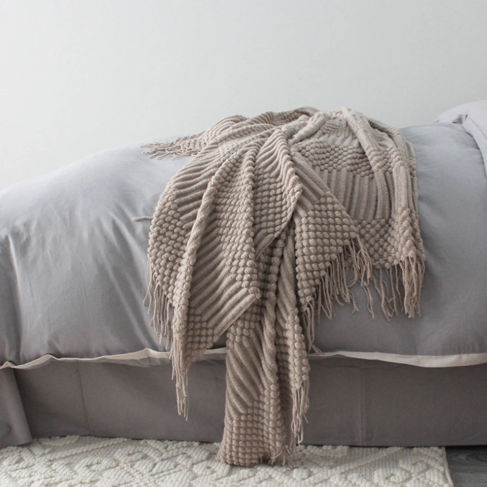Плед для дивана, вязаное одеяло с кисточками, для путешествий, для ...