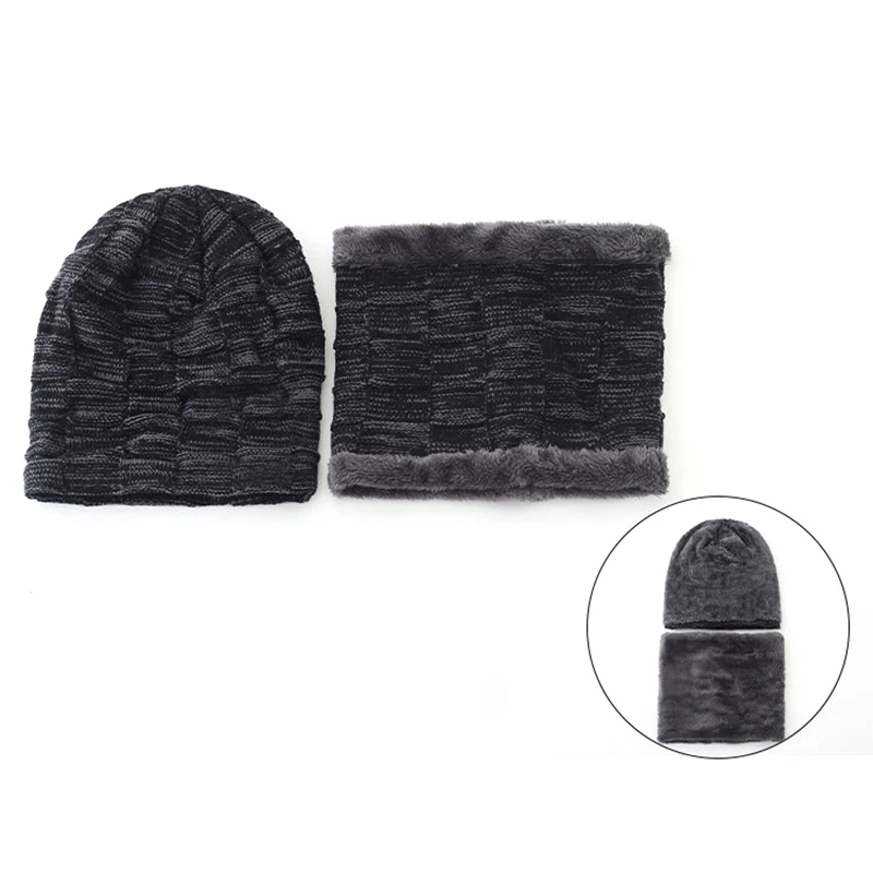 Мужская Шапка-бини, 2 шт., лыжная шапка и шарф, зимняя теплая, вяза...