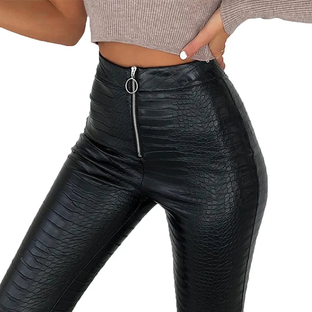 2020 Модные женские повседневные брюки из искусственной кожи с высо...