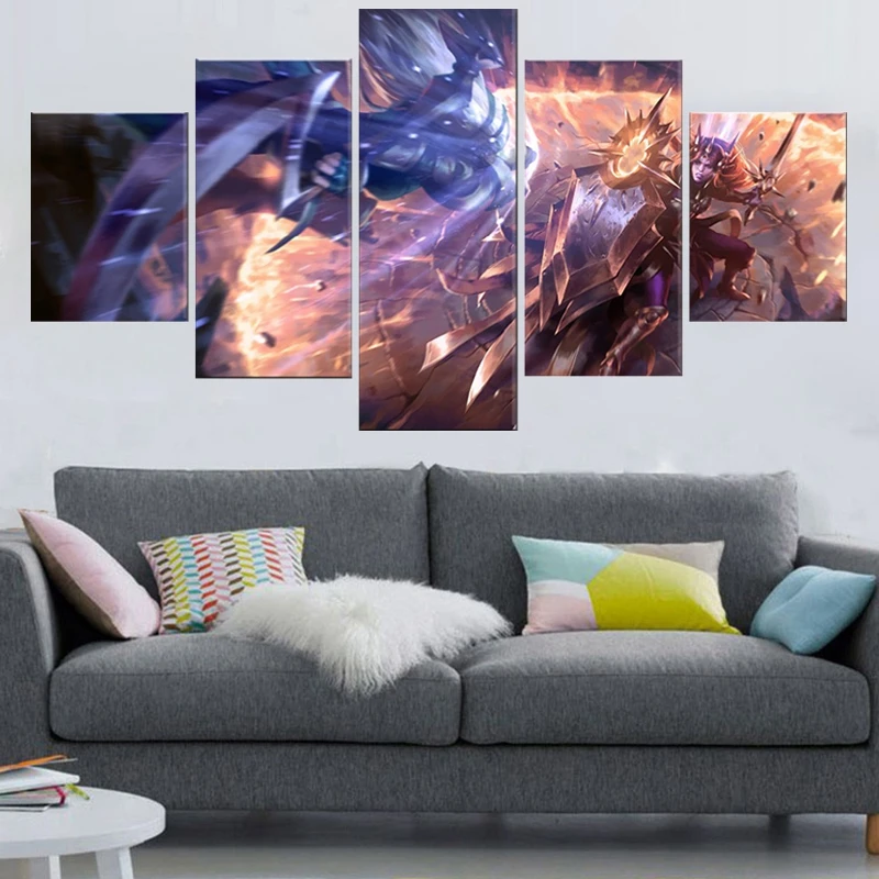 Современный холст Художественная печать 5 шт. битва Лига Легенд Диана Леона щит меч картина настенное украшение модульный игровой плакат
