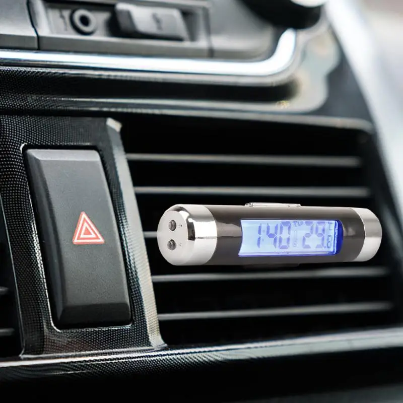 Автомобильные цифровые часы 2 в 1, электронные часы-термометр с клипсой, цвет черный