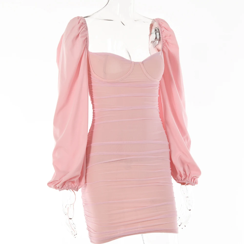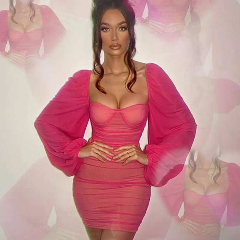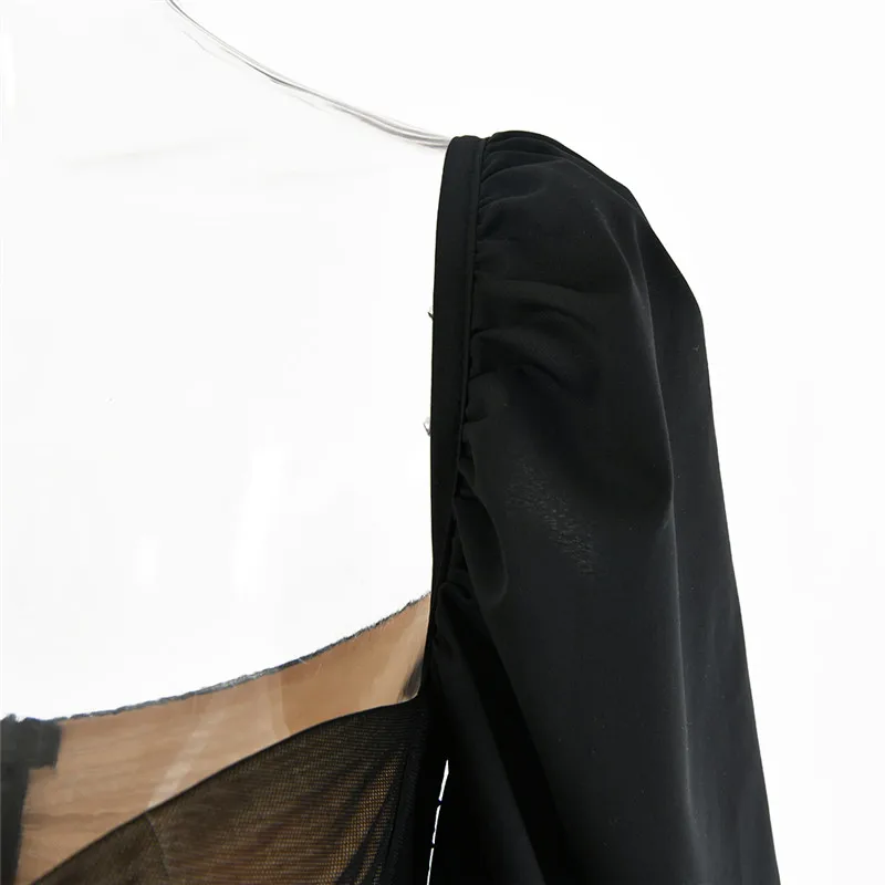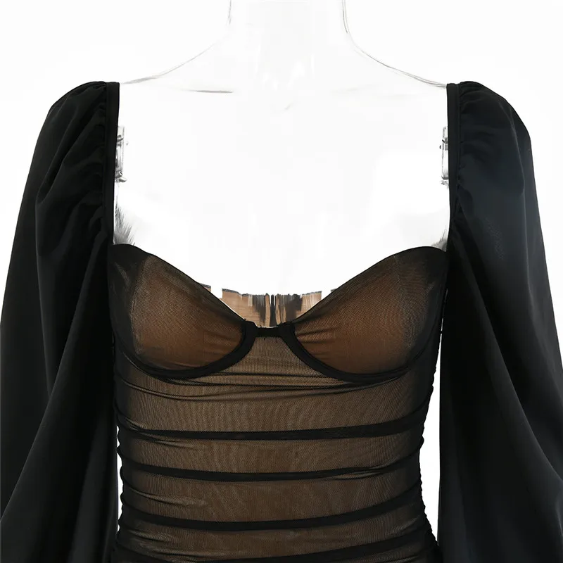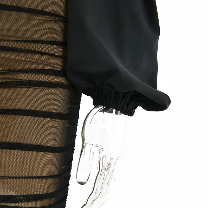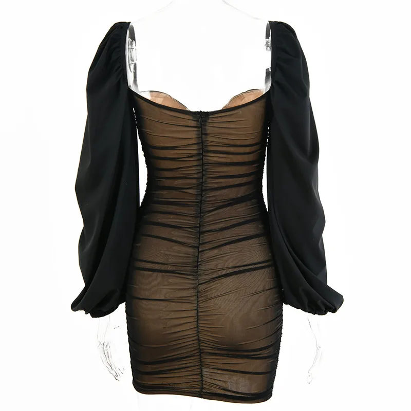 Fantoye 2022 весеннее Двухслойное Сетчатое мини-платье для женщин с рукавами-фонариками и рюшами, Клубное платье в обтяжку, сексуальное черное платье с открытой спиной