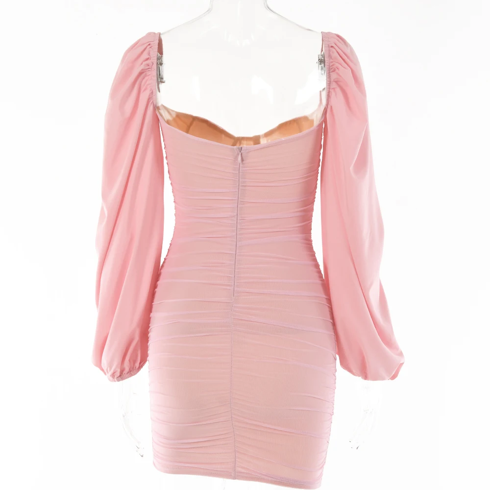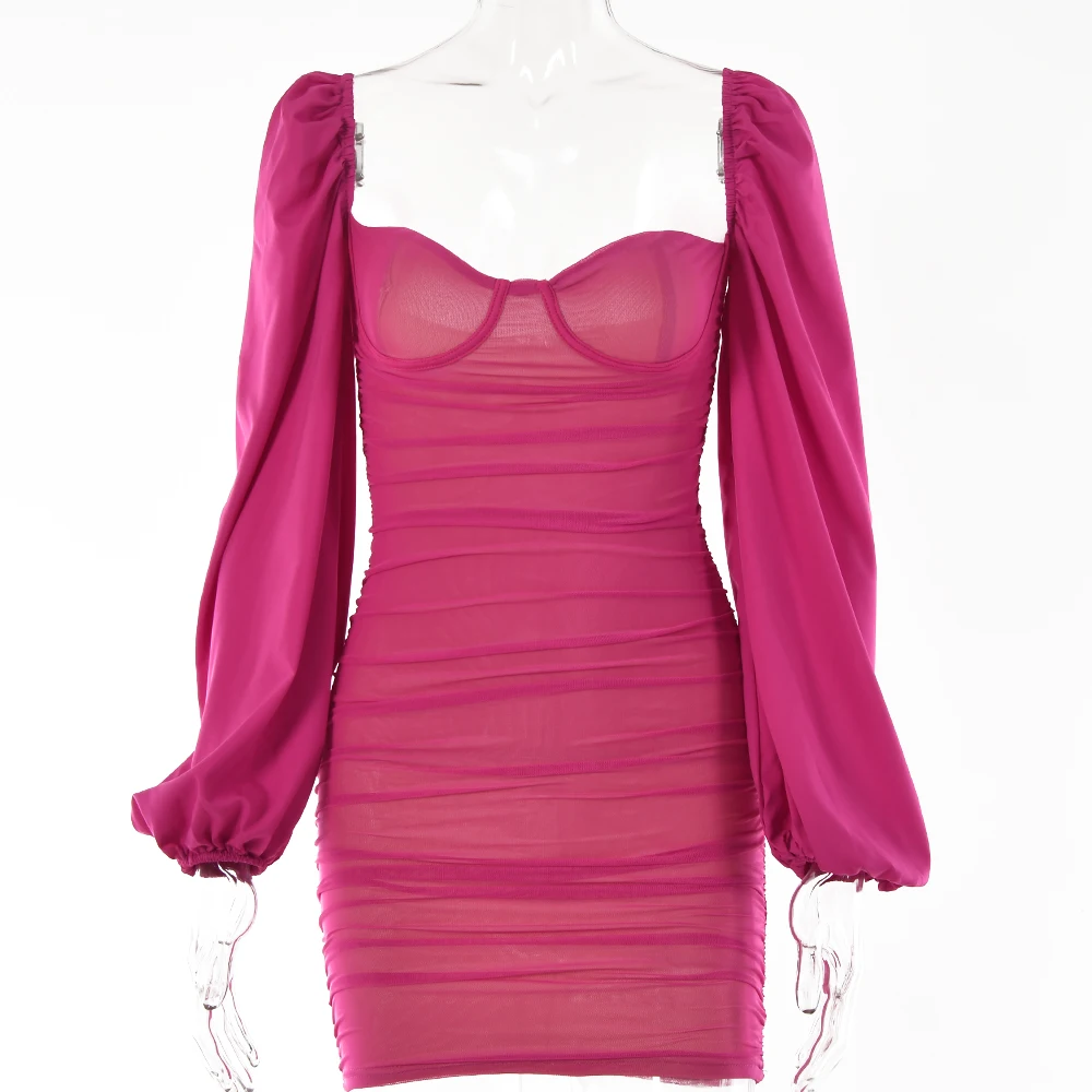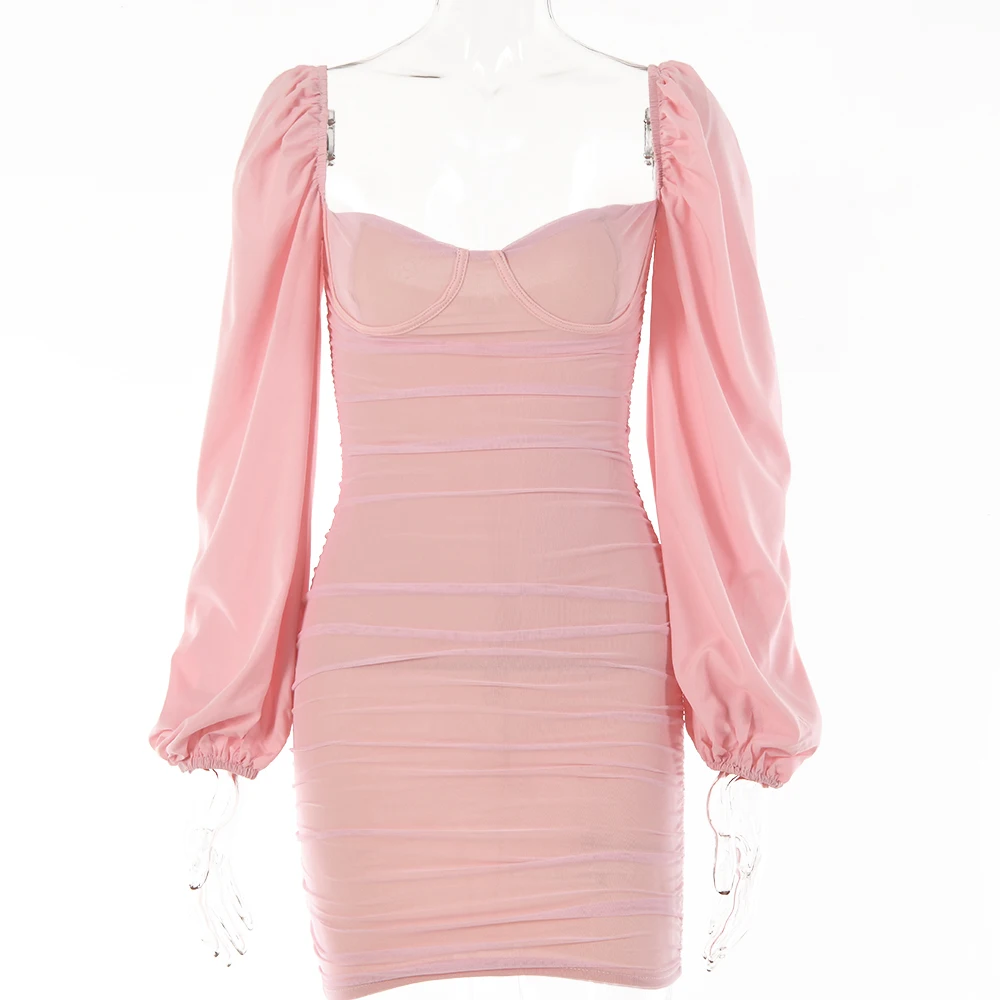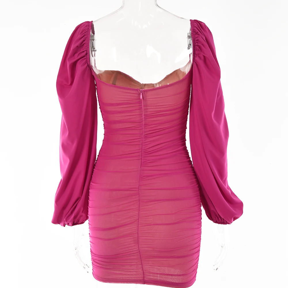 Fantoye 2022 весеннее Двухслойное Сетчатое мини-платье для женщин с рукавами-фонариками и рюшами, Клубное платье в обтяжку, сексуальное черное платье с открытой спиной