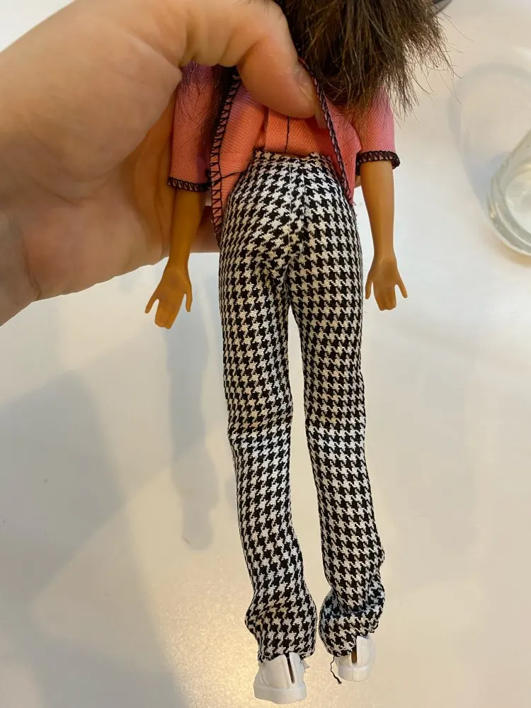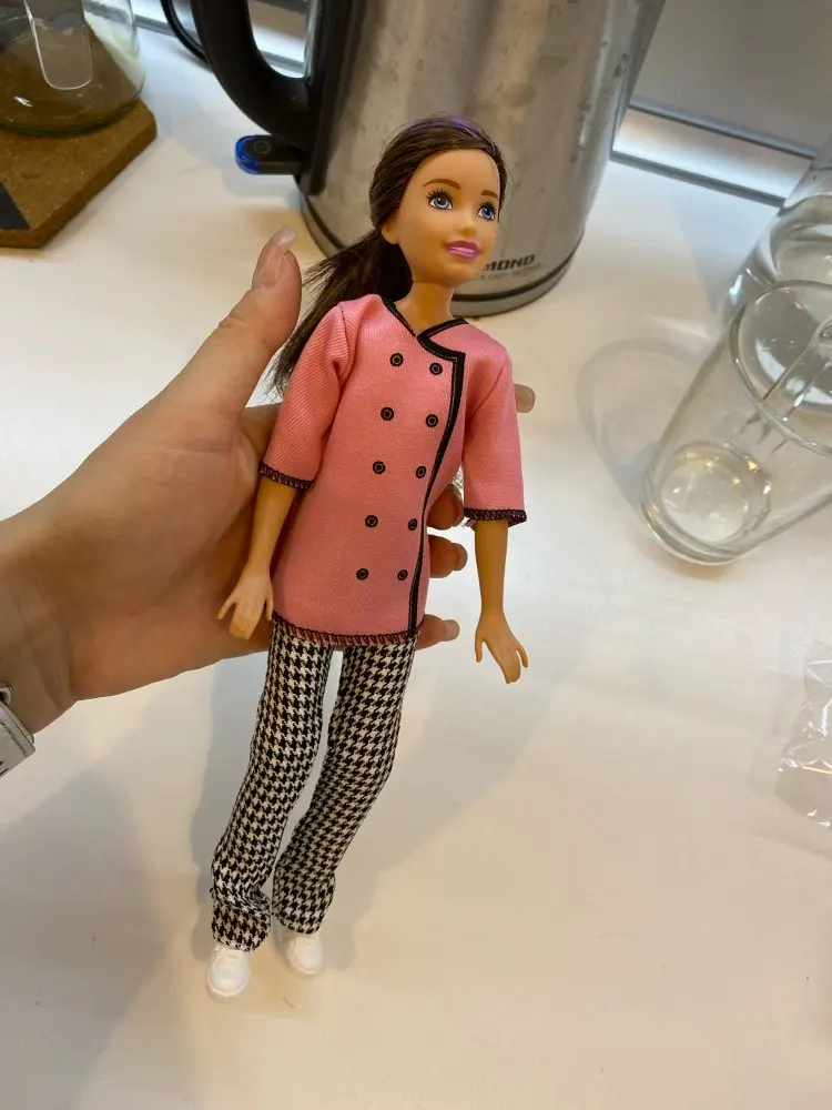 Почему на кукол шьют из нетянущейся ткани? Комплект из плотной синтетики. Курьтка с печатью и необработанной горловиной. Шапочка не надевается на головы барби. Штаны не застегиваются на попе классической барби, но на скиппер (няня) сидят хорошо, только длинноваты. В целом комплект норм, но мал классической барби. На скиппер сидят хорошо, но шапка все равно никому не подошла. Посылка пришла очень быстро, меньше месяца, отслеживалась.