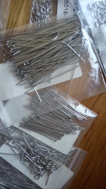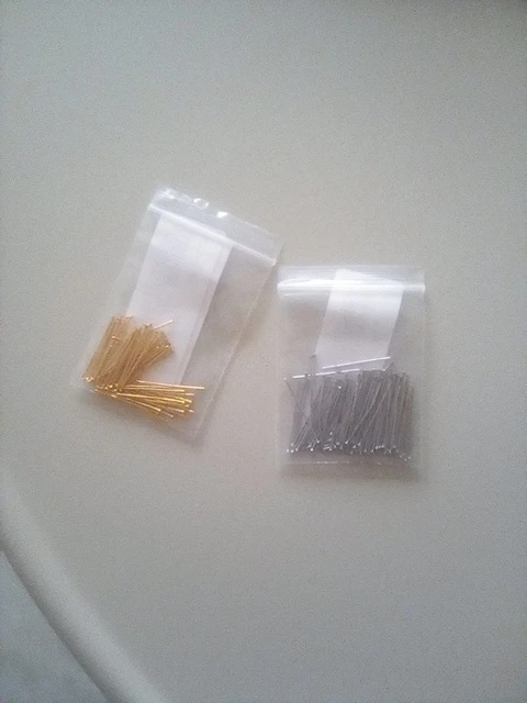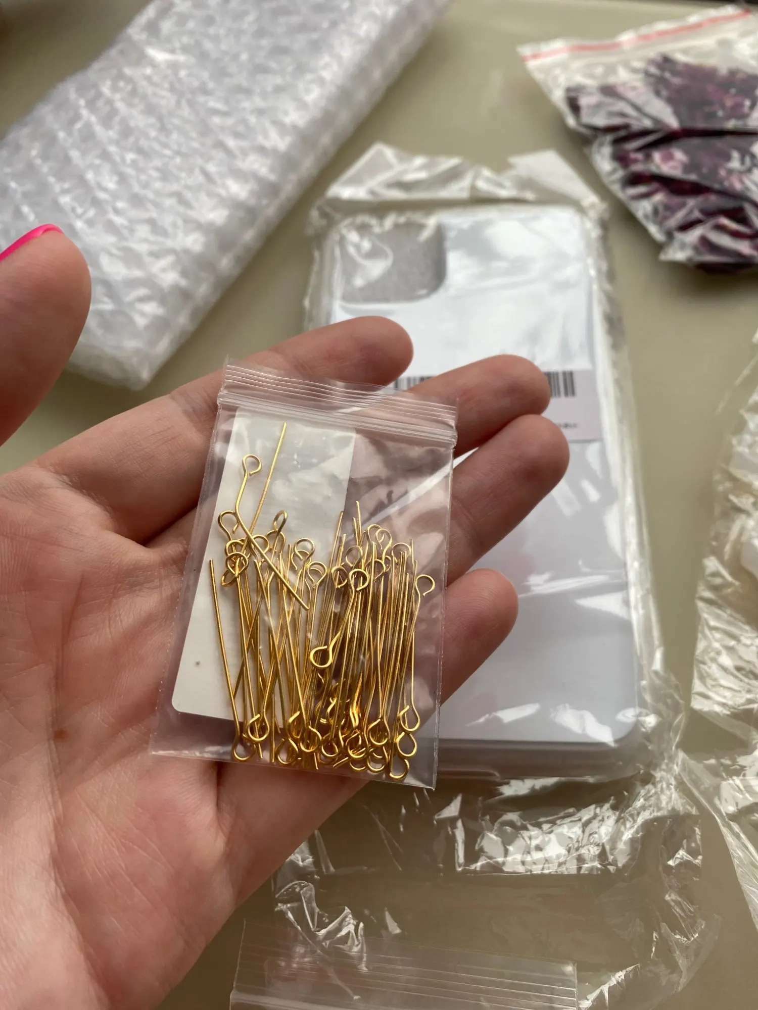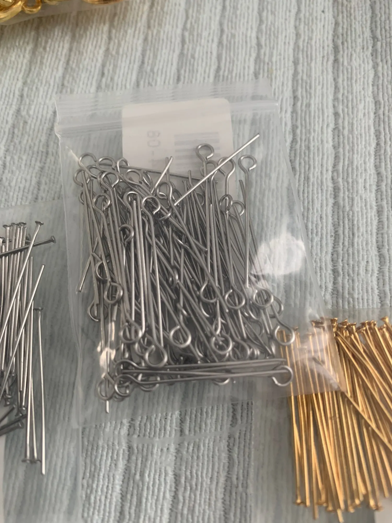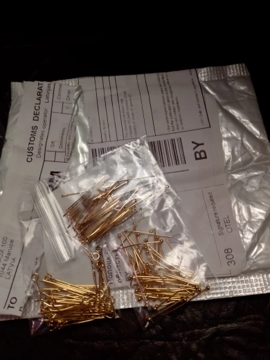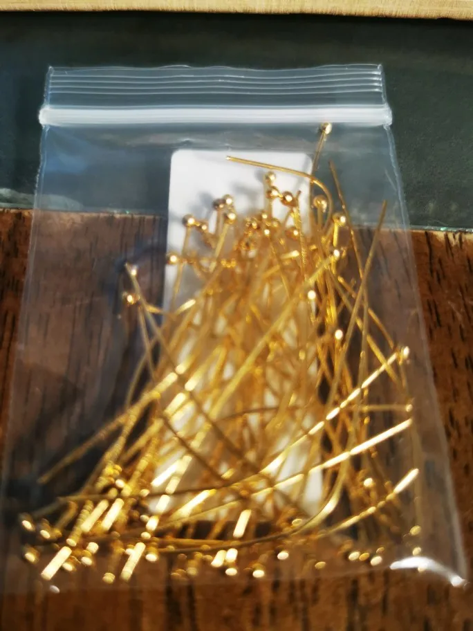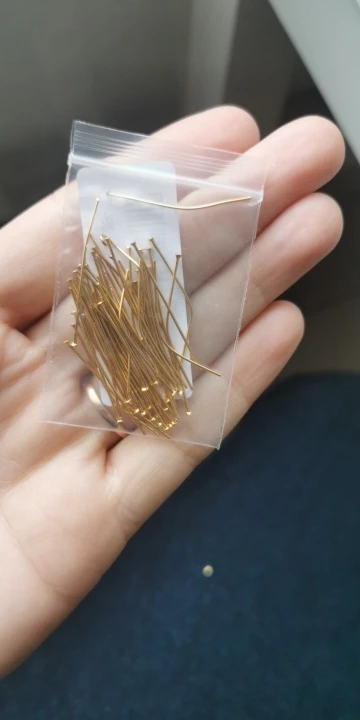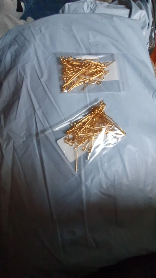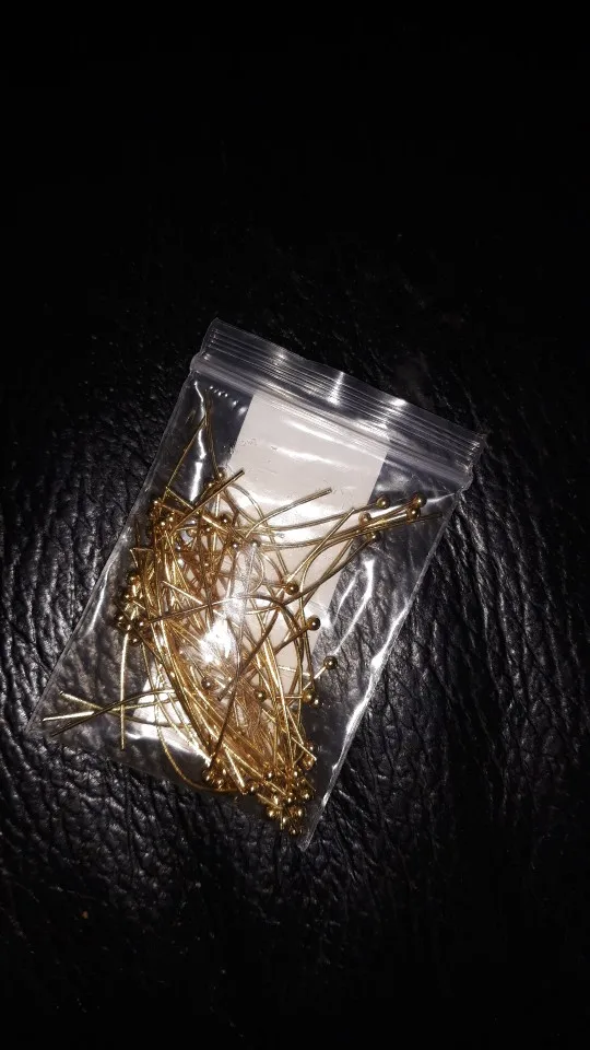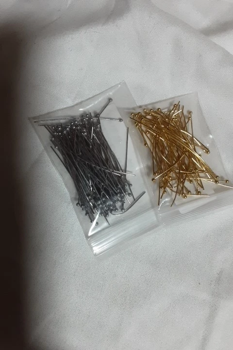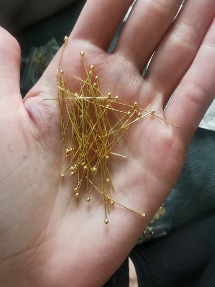 Хорошее качество, не облазят в солёной воде и не ржавеют, хороший оттенок жёлтого, НО очень маленькие шляпки, подходят только на бусины с маленькими отверстиями или маленького диаметра. Открыла спор, половину денег вернули.