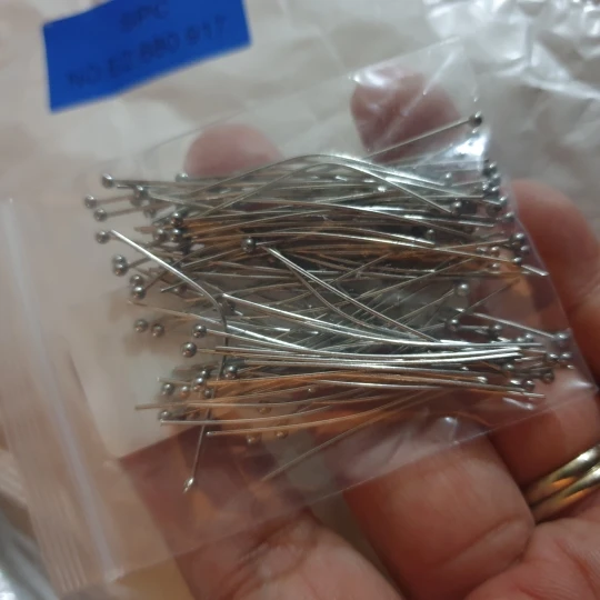 Ставлю 5 звёзд за то, что вернули часть суммы. Продавец не вступал в спор, решение вынес АлиЭкспресс. 95% пинов пришли с пятнами, и это меня очень огорчило. Головки-шарики не совсем ровно расположены относительно стержня. Качество оставляет желать лучшего. Однако(!) пины выдержали почти недельное испытание водой и не потемнели, не поржавели. Вернула часть средств за дефекты и несоответствия качества, но пины всё же решила оставить себе. Хотя вряд ли отважусь заказать этот лот ещё раз. Вот пины с ушком из этого лота были просто идеальны, но эти шарики...