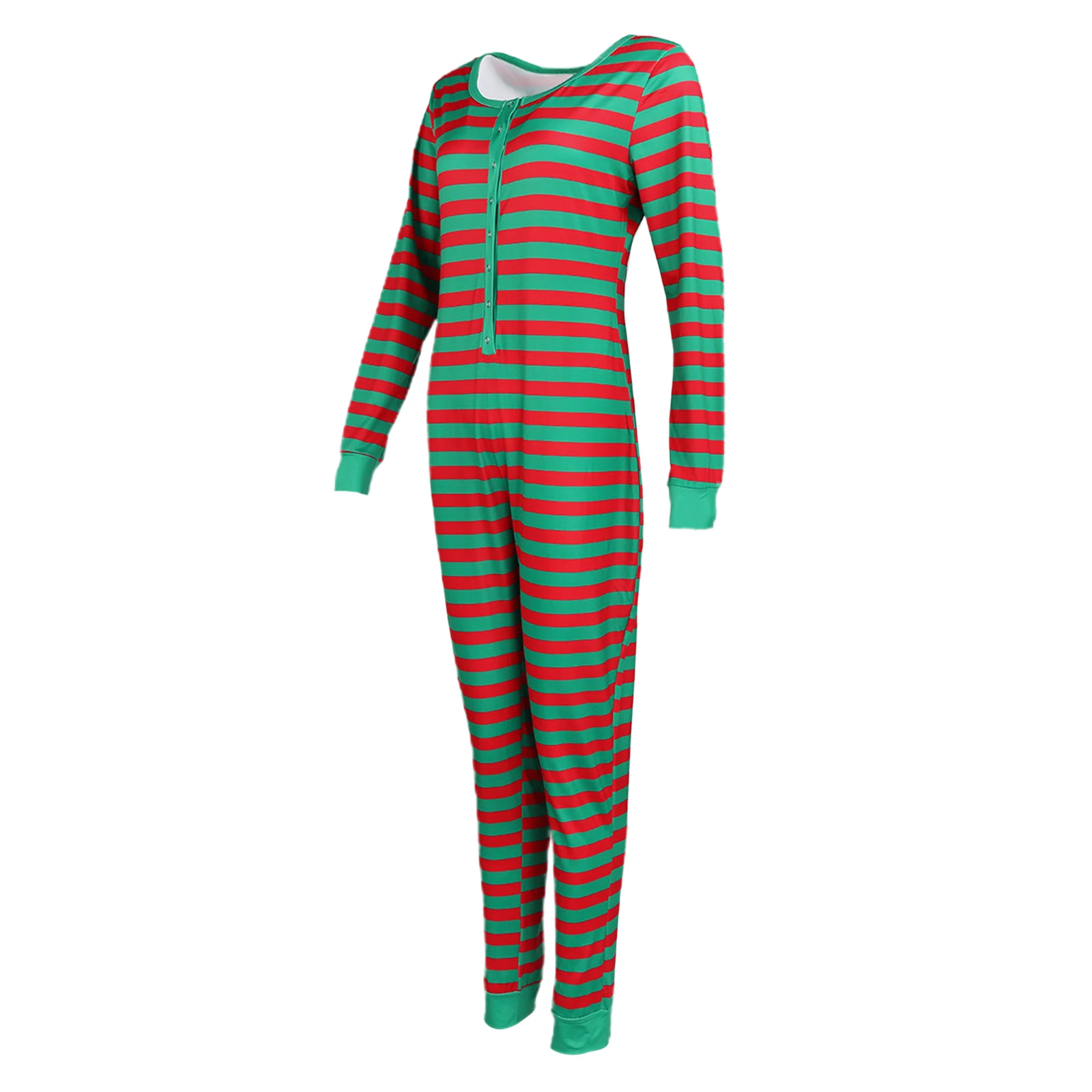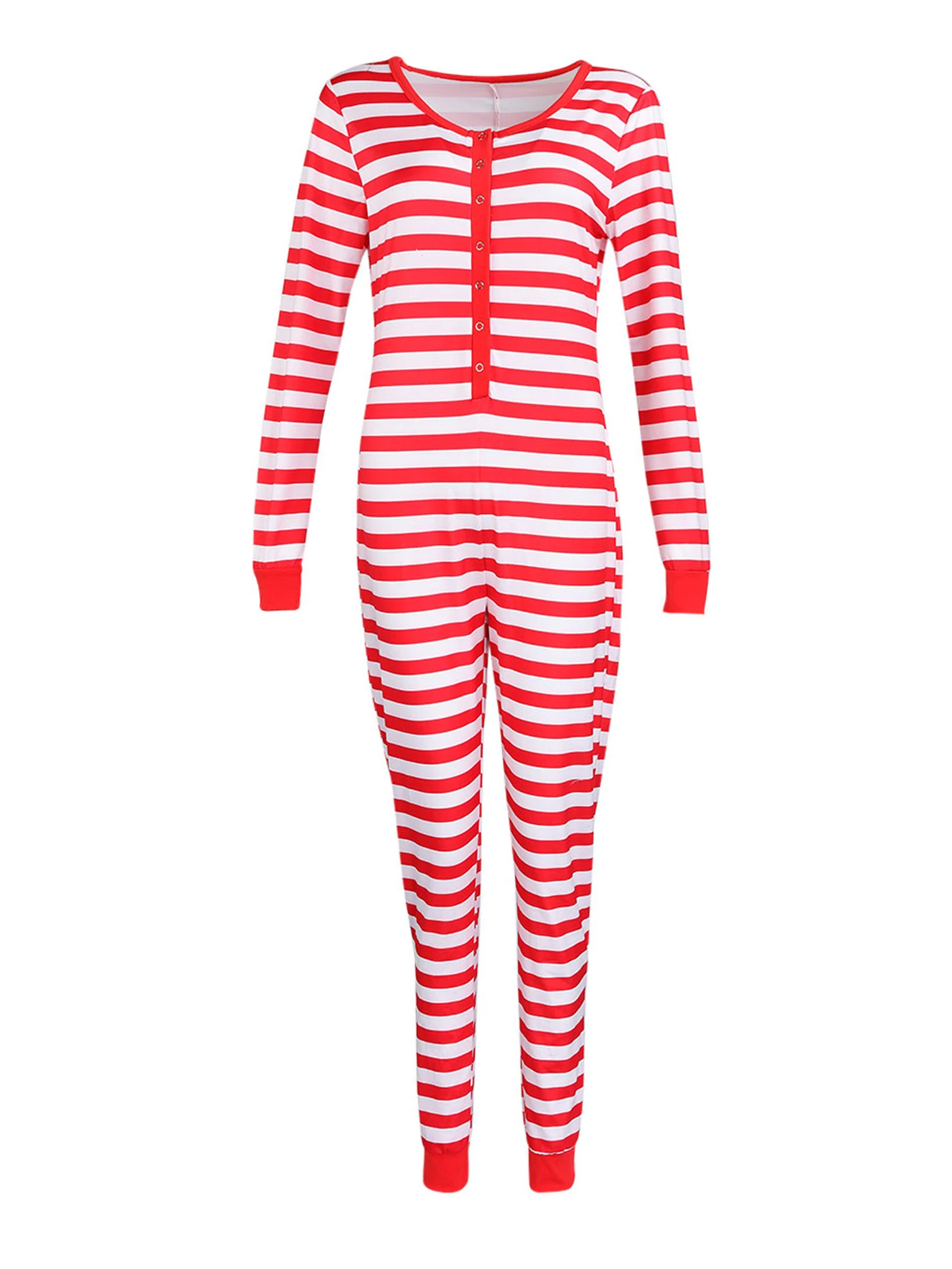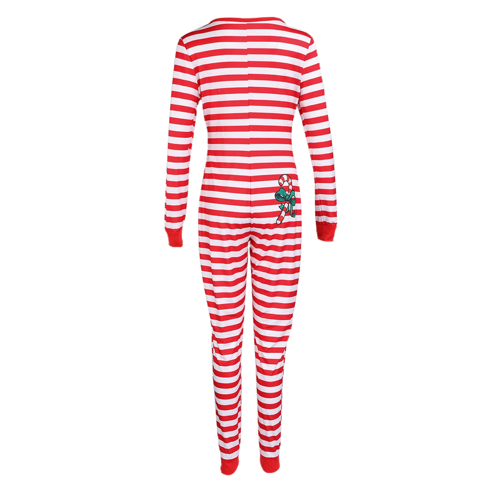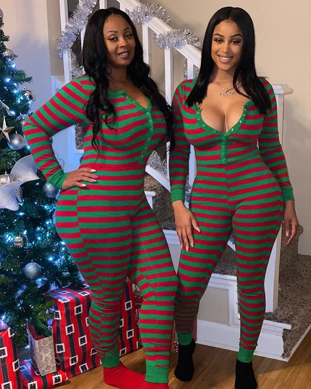 Комбинезон женский домашний с длинным рукавом, Эластичный Ромпер в полоску, домашняя одежда для сна в рождественском стиле
