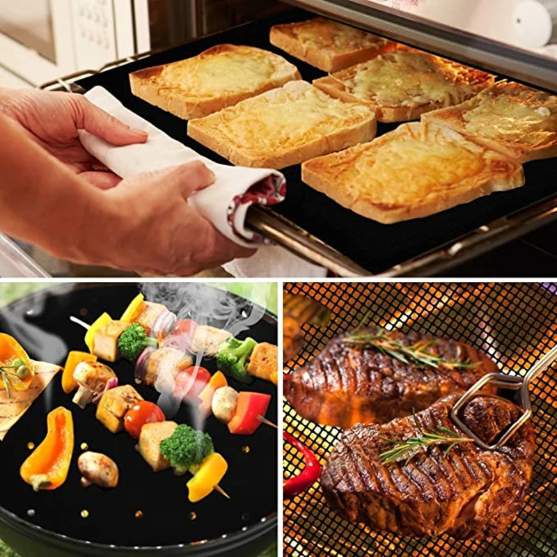 3PCS100% с антипригарным покрытием для барбекю Гриль коврик для выпечки хлеба тортов пиццы многоразовый и легко моется-работает на электрический гриль газ на древесном угле, производство Китай