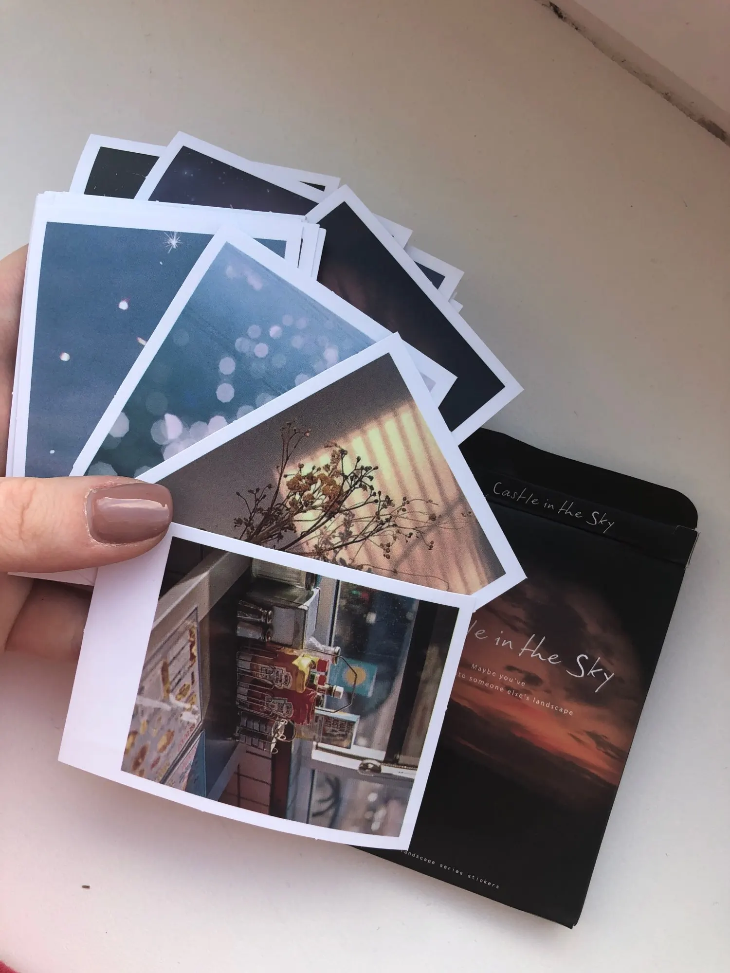 Они выглядят действительно хорошо, как на фотографиях. Размер кредитной карты, принт четкий, они не просвечиваются. Доставка в Европу занимает около 3 недель. Они также очень красиво упакованы. Некоторые наклейки слегка согнуты, но они не повреждены. Хорошо клеится. И очень красивые наклейки. Действительно красиво-это также много наклеек. Очень хорошо по цене