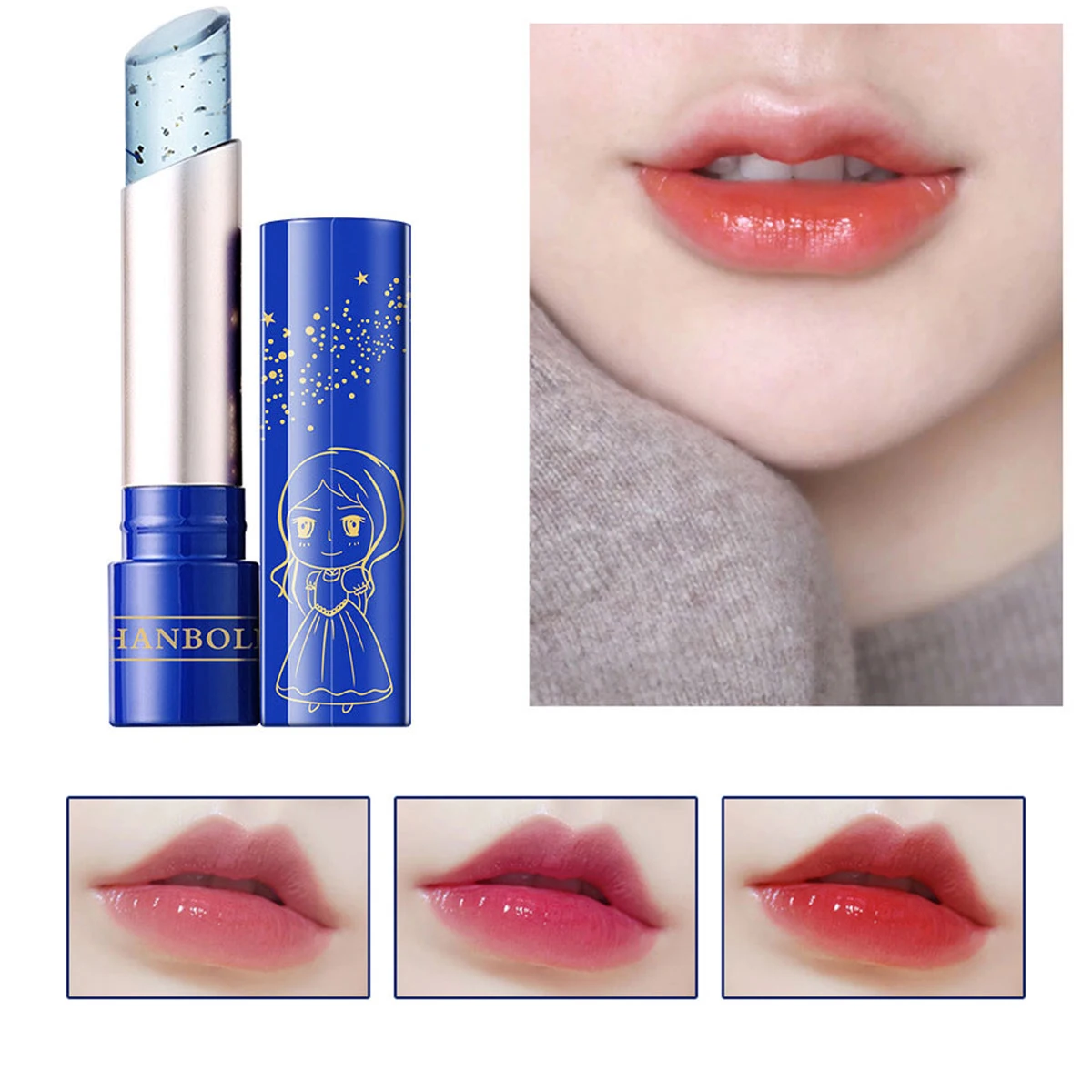 1 шт. Желейный бальзам для губ с золотой фольгой, меняющий цвет при температуре, питательная помада для макияжа, длинный-стандартный бальзам для ухода за губами