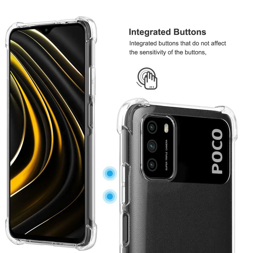Мягкий силиконовый чехол для Xiaomi Poco M3, полное покрытие, прозрачные чехлы из ТПУ, прозрачные противоударные аксессуары для смартфонов Poco M 3