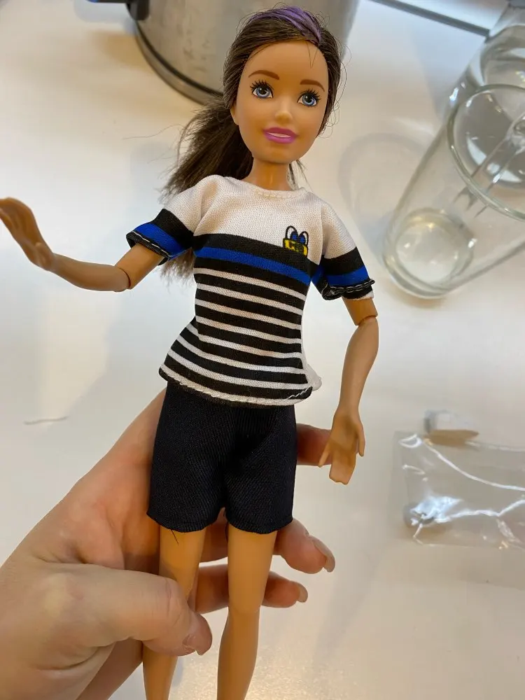 Комплект брючки в горошек и серый топ, сидит на Блайз хорошо. Но сняла звезду за то, что топ был плохо пошит, пришлось самой дошивать.