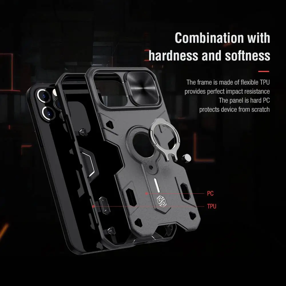 Армированный чехол NILLKIN для Apple iPhone 12 11 Pro Max Mini, задняя крышка, защитный чехол для камеры с кольцом-держателем на палец