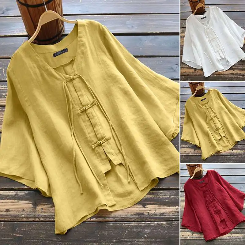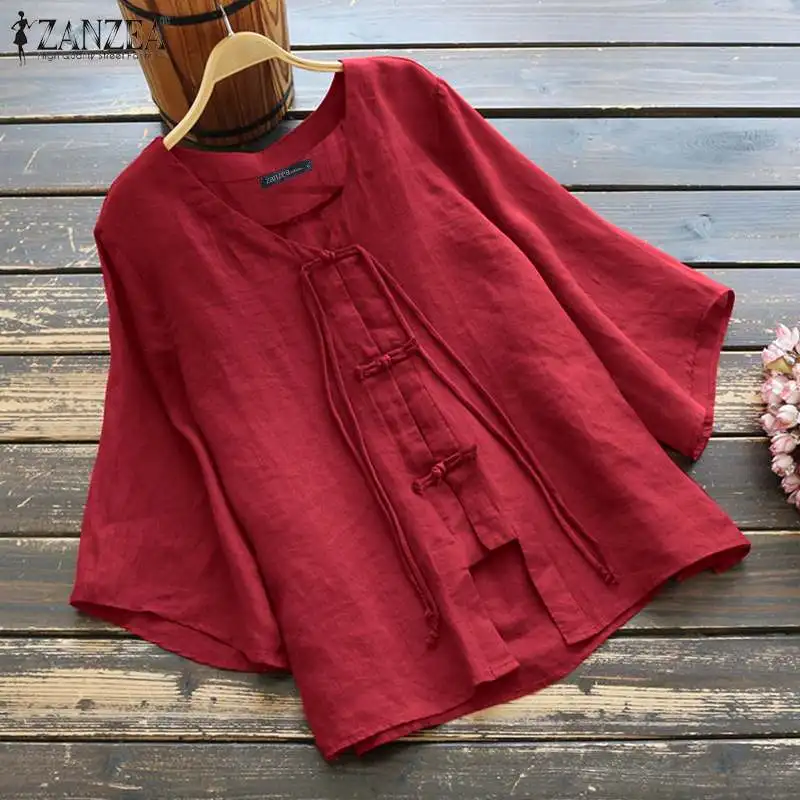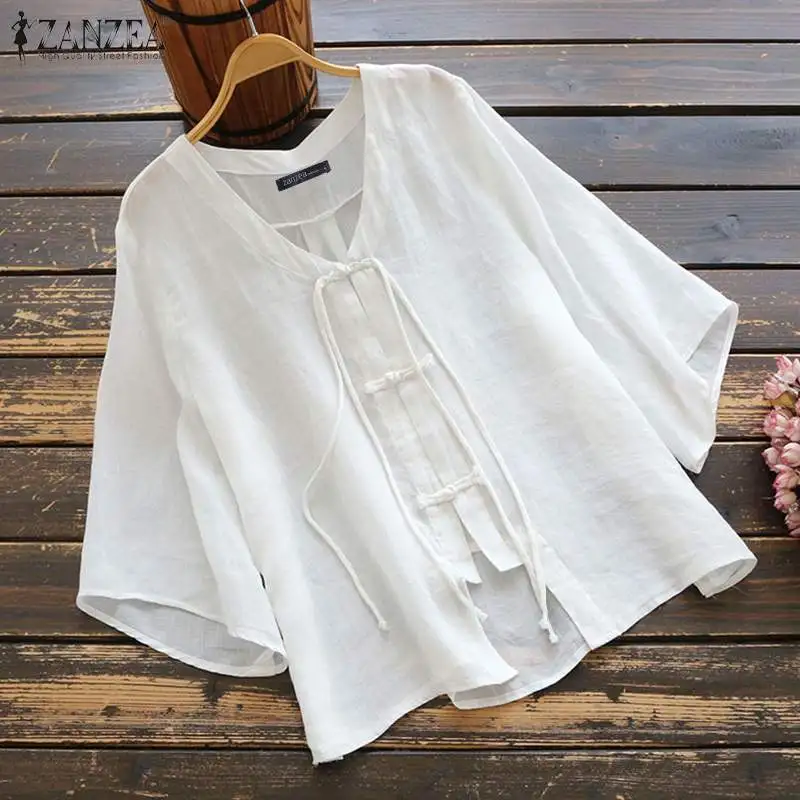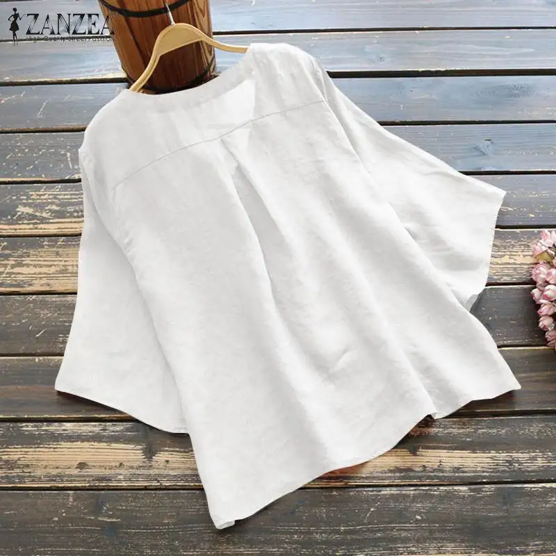 Блузка ZANZEA женская льняная с длинным рукавом, повседневный кафта...