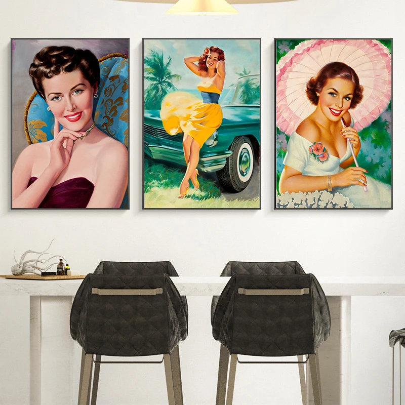 Сексуальная соблазнительная девушка во Второй мировой войне, постеры для рисования на холсте и принты, Настенная картина, абстрактные декоративные постеры для домашнего декора