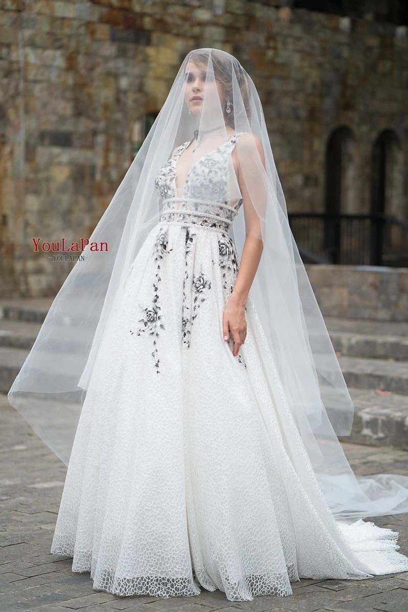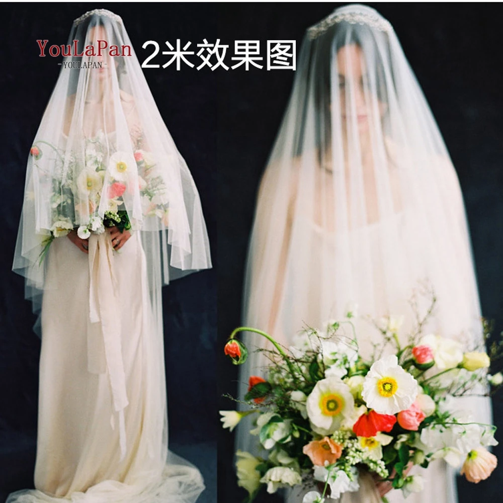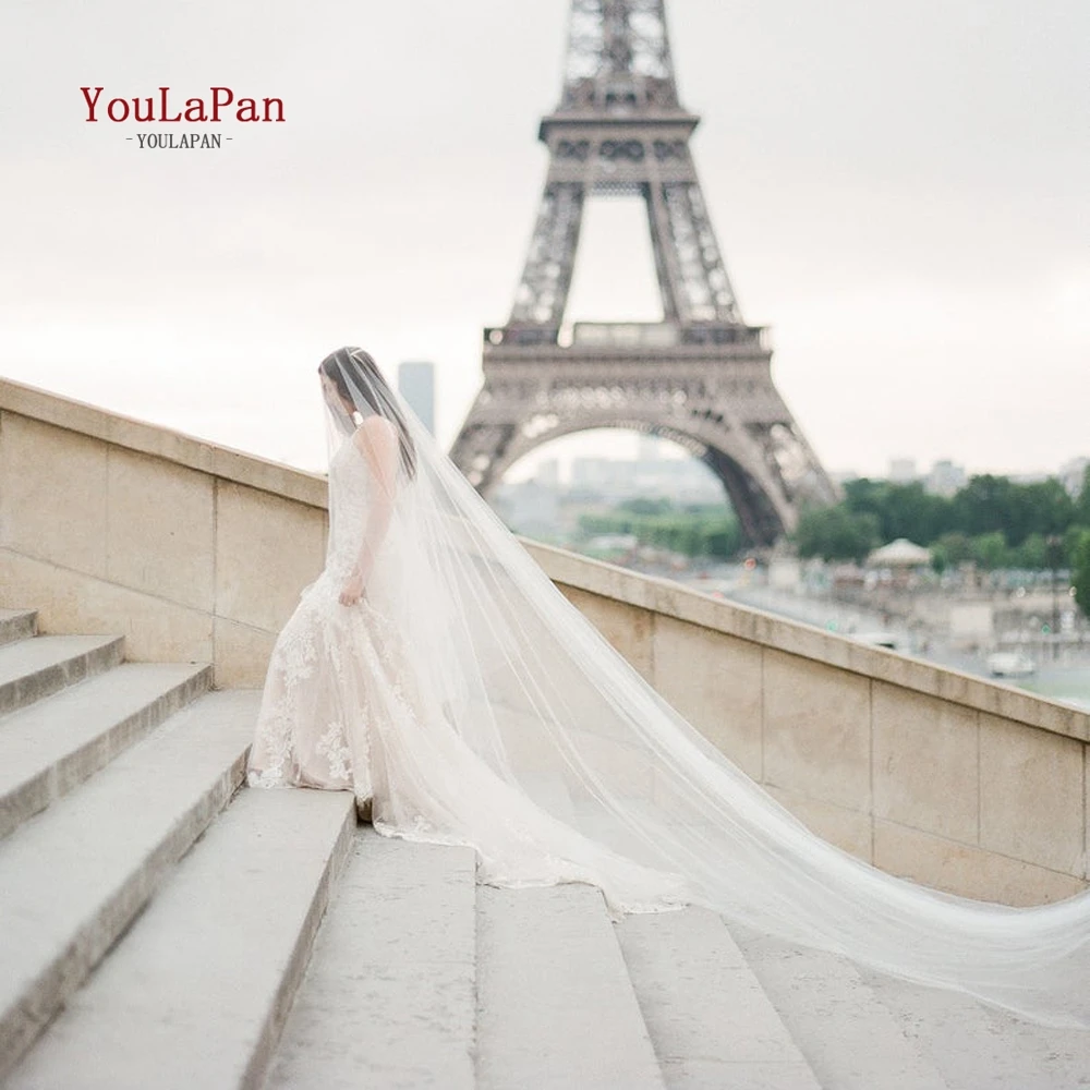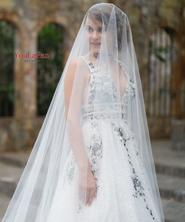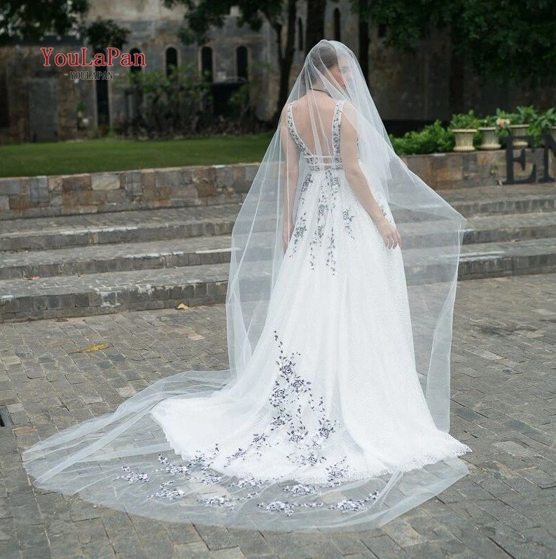 Длинная фата YouLaPan V30 для невесты, фата для невесты, роскошная Свадебная, белая, цвета слоновой кости, швейцарская, для девушек