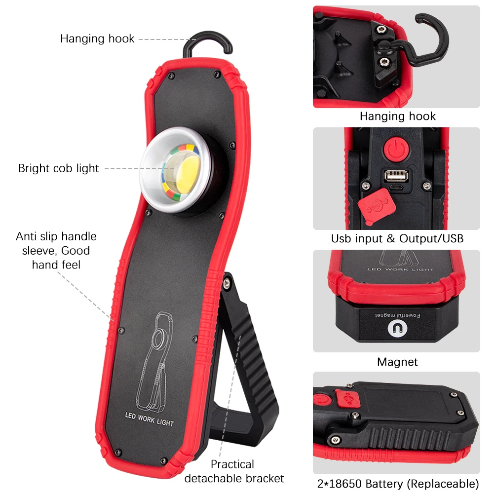 Переноссветильник светодиодная вспышка COB с USB-зарядкой светильник онарь на магните, лампа для экстренного освещения кемпинга со встроенным аккумулятором и магнитным крючком