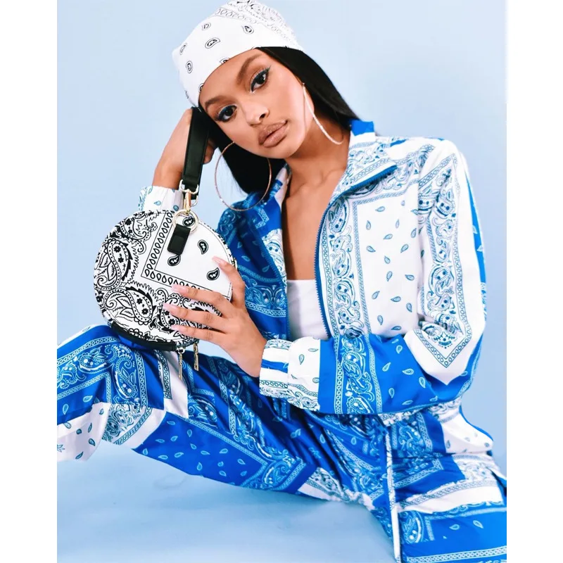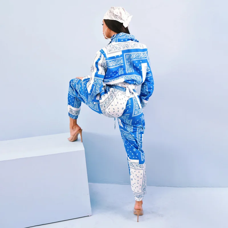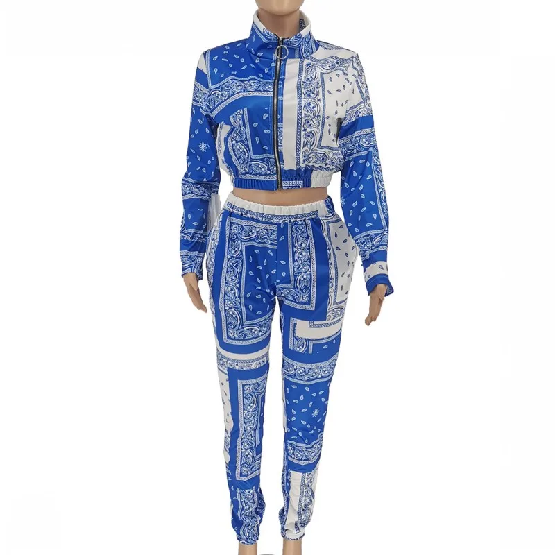 Спортивный костюм женский с принтом, Модный укороченный топ и штаны, комплект из 2 предметов, уличный стиль, комплект в стиле хип-хоп, весна-осень