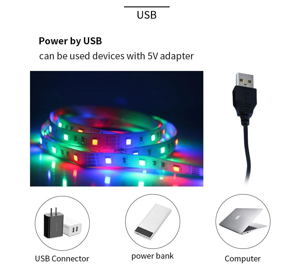 Светодиодная лента RGB 5050 с USB-разъемом для ТВ, гибсветодиодный ...