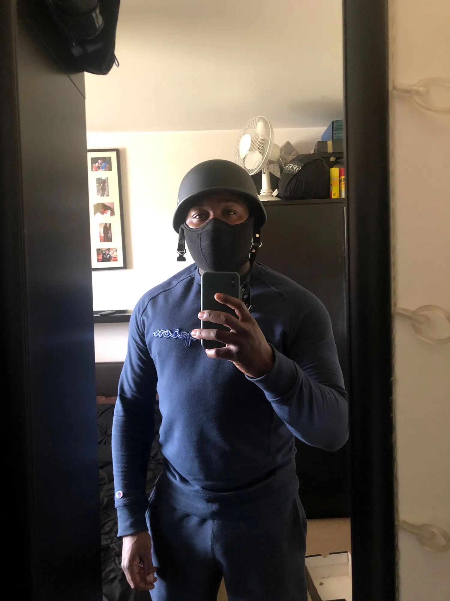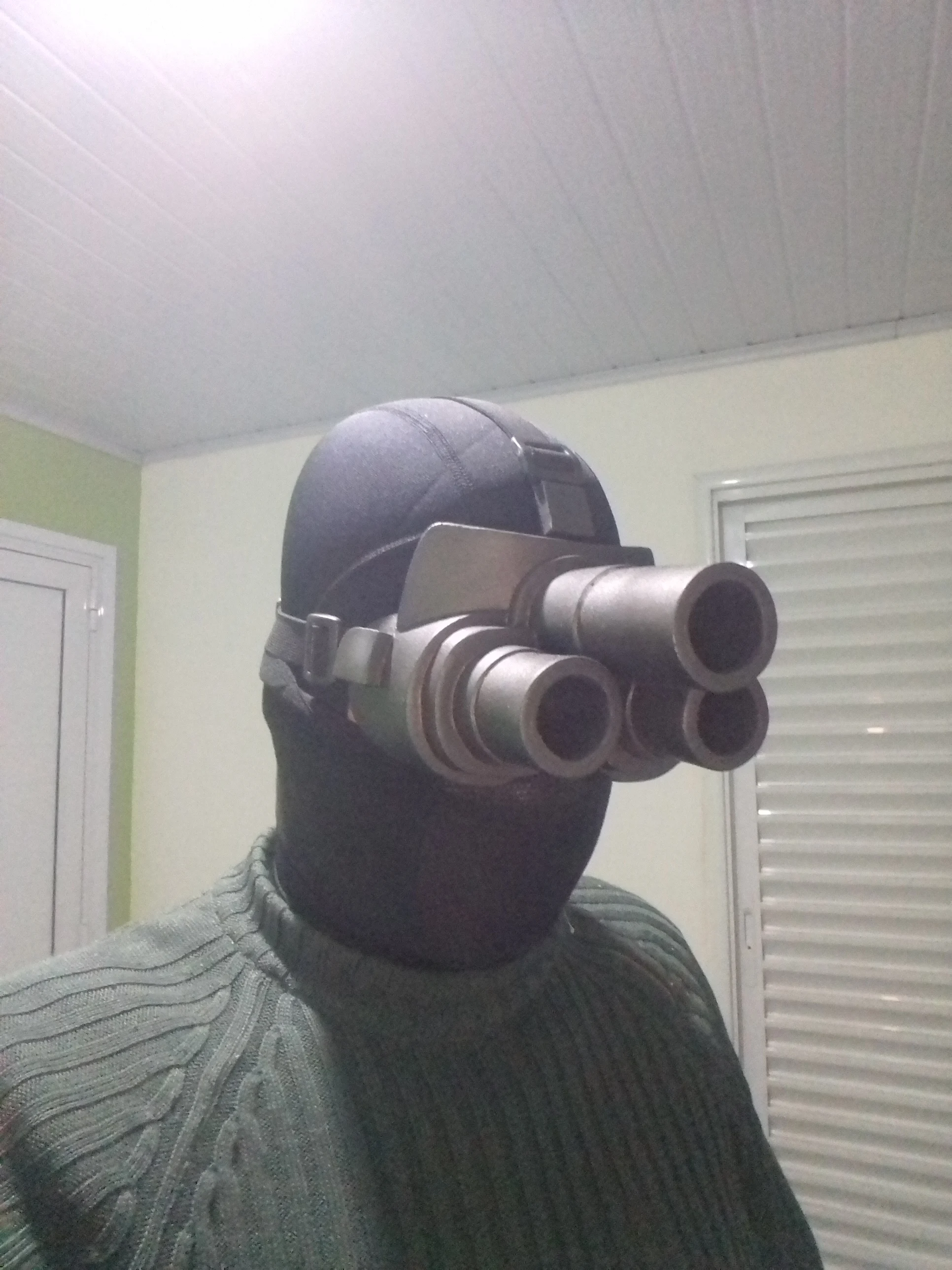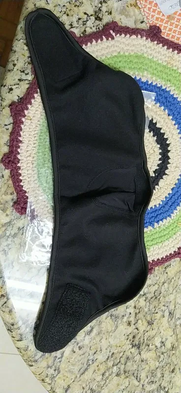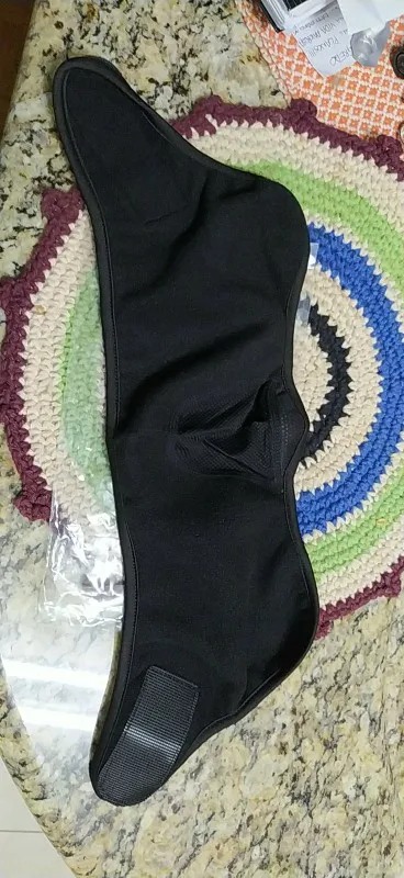 Он прибывает в Чили через 20 дней. Очень хороший материал, похожий на флисовую сетку из более тонкого материала в области носа, усиленные края с мягкой тканью. Липучка, как те, что свернуты кабели, очень безопасны в движении, закрывает уши.