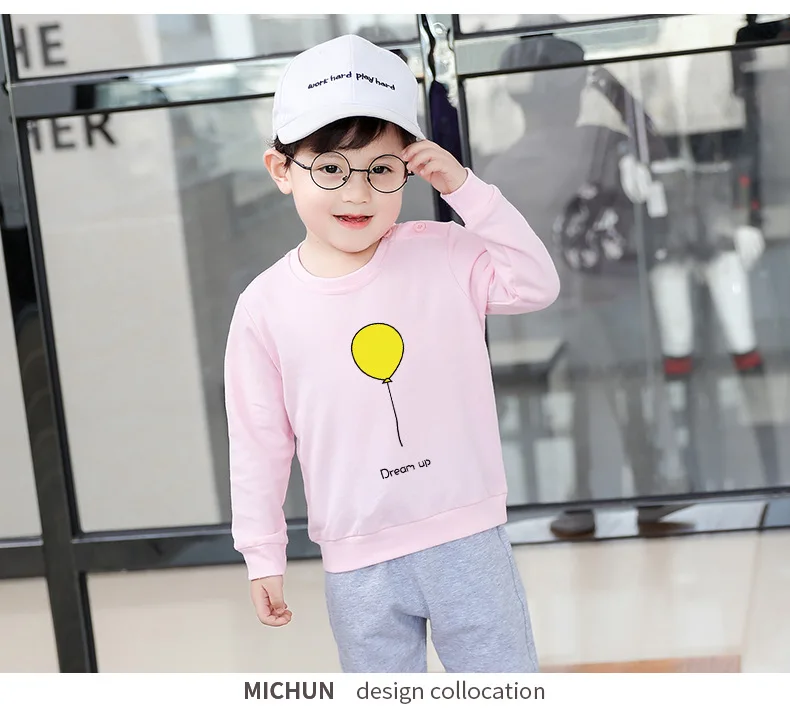 Новинка 2021, детский хлопковый свитер, повседневная спортивная рубашка с длинным рукавом для девочек, топы с мультяшным рисунком воздушных шаров для мальчиков, Детская куртка