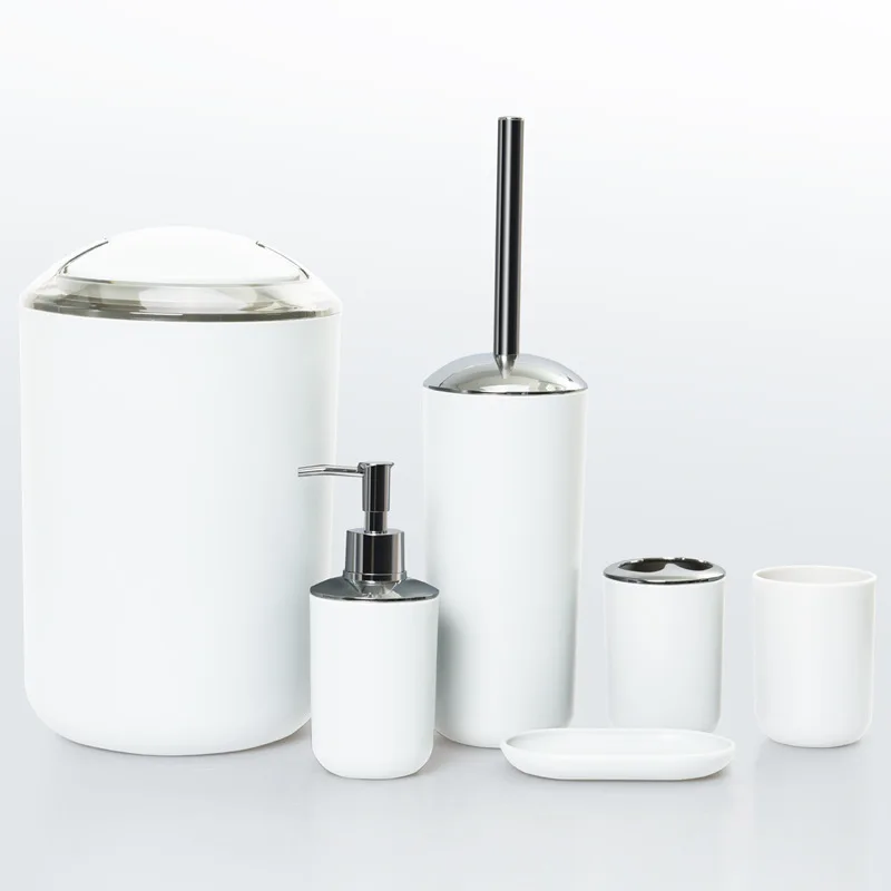 Стоящий дизайн чашек chukou экономит пространство в вашей ванной комнате, добавляя много элегантности. Держите ванную в чистоте и порядке. Элегантный и благородный дизайн мыльной коробки показывает ваш модный вкус. Чашка держатель для зубной щетки современный и простой стиль, и корпус чашки имеет круглый дизайн, что делает его более естественным и удобным для хранения. Бутылка для жидкости направляет вас в удобную ванную комнату. Общий обзор красивый и удобный, простой и элегантный. Улучшенная бутылка для лосьона имеет увеличенную высоту и может удерживать больше геля для душа, шампуня, мыла для рук и т. д. простой и уникальный внешний вид мусорного бака подходит для любого случая. Нет ступни, и дизайн флип может быть легко брошен в любое время. Мусорный бак изготовлен из прочный материал пп, который является экологически чистым и увеличивает время использования. Туалет начесан плотной щетиной, 360 ° очистки. Стоящая конструкция туалетной щетки экономит больше места в ванной комнате и удобнее в использовании.