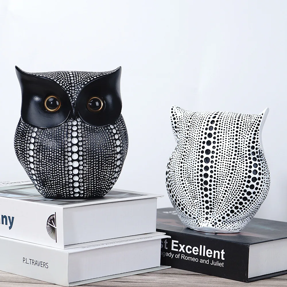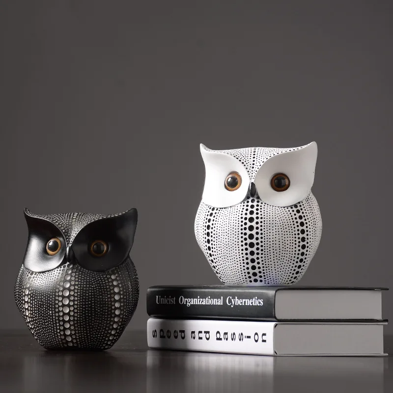 Статуэтки из смолы в виде совы, украшения для дома ручной работы, миниатюрные фигурки в скандинавском стиле, белая черная сова, 1 шт.