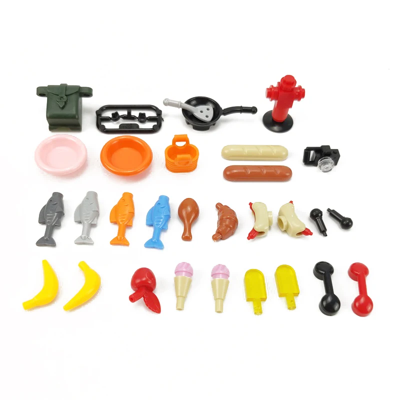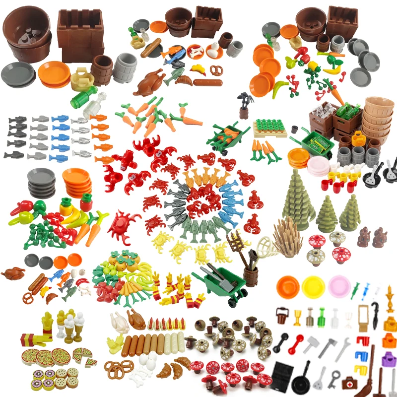 Городская еда, фрукты, морская еда, фермерские инструменты, строительные блоки, развивающие игрушки, MOC, города, сборка, аксессуары, модели, наборы игрушек
