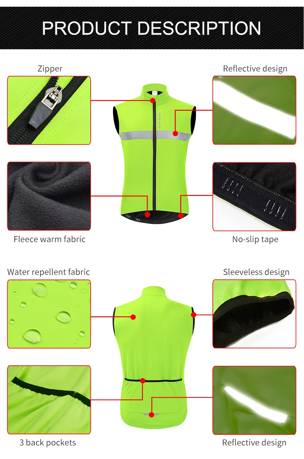 Теплая Флисовая теплая велосипедная жилетка WOSAWE, велосипедный жилет, светоотражающий ветрозащитный жилет на осень и зиму для езды на велосипеде, куртка без рукавов для горного велосипеда, Джерси