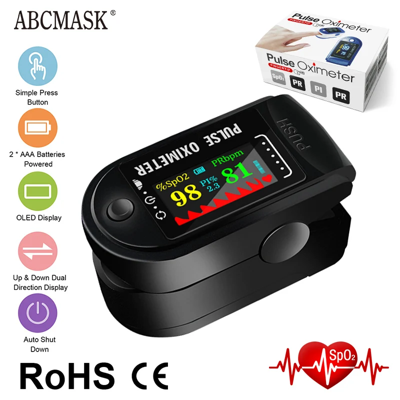 Особенности:Пальчиковый Пульсоксиметр для простой ежедневной проверки, может использоваться в семьях, школах, социальных центрах, общественных центрах и т. д.Предназначен для измерения насыщения крови кислородом и пульса взрослых или детей, и вы можете использовать его для измерения до или после занятий спортом.Оснащен четким tft-экраном, показывающим значение SpO2, частоту пульса (PR), импульсную волну и т. д.Простой в использовании, откройте зонд, затем вставьте один палец в зонд, включите оксиметр, через несколько секунд результат измерения можно прочитать непосредственно с экрана.Питание от 2 батареек AAA (не входят в комплект), Пульсоксиметр автоматически выключается в 8 с, если нет сигнала пальца.Компактный размер и легкий, с ремешком, удобно носить с собой и использовать в любое время в любом месте.Характеристики:Цвет: белый и синийТип дисплея: TFT дисплейЗаявленная точность SpO2: 70%-99%, ± 2% на этапе 80%-99%, ± 3% на этапе 70%-79%PR заявленная точность: 30-240bpm, ± 1bpmИсточник питания: 2 * батарейки типа "ААА" (не входит в комплект)Рабочая температура: 5 ℃-40 ℃Рабочая Влажность: 15%-80%Атмосферное давление: 70kPa-106kPaТовар Размеры: 6*3,2*3,2 см/2,4*1,3 * 1.3inВес изделия: 25 г/0,88 унцийПосылка Размеры: 7*7*4 см/2,8*2,8 * 1.6inПосылка Вес: 41 г/1,4 ozУпаковочный лист:1 * оксиметр1 * ремешок1 * Руководство пользователя (на английском языке)