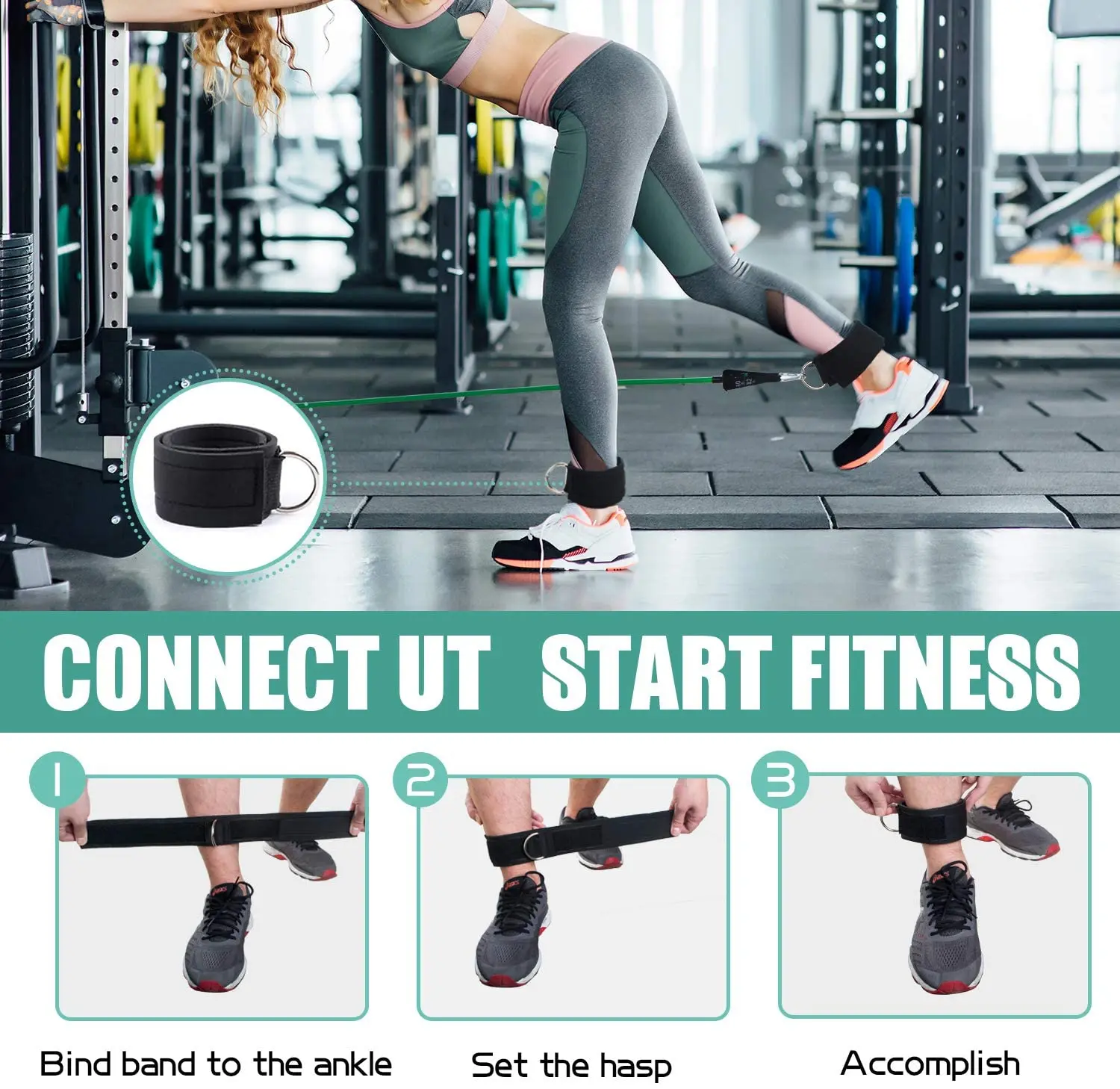 Все аксессуары в одной упаковке: В комплект входит 11 предметов, 5 тренировочных лент, 2 ручки, 2 ремешка на лодыжке, дверной якорь и сумка для переноски.