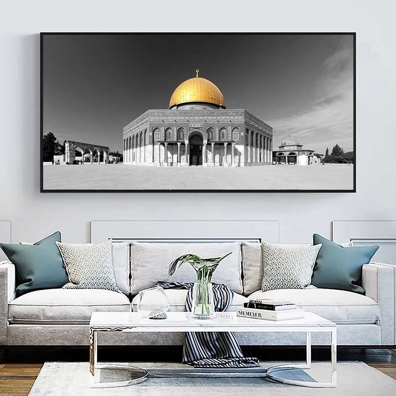 Черно-белый исламский купол Золотой рок стена Аллаха художественная живопись на холсте плакаты и принты настенные художественные картины для домашнего декора
