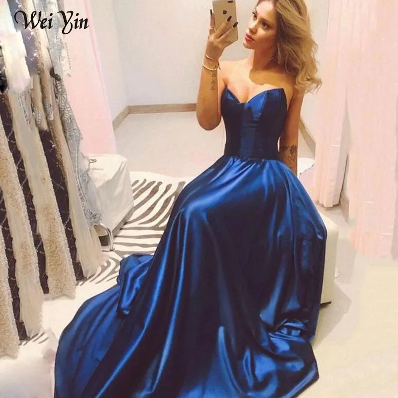 Weiyin AE0583 сексуальные платья для выпускного вечера, длинные женские атласные вечерние платья на бретельках с открытой спиной, вечернее платье