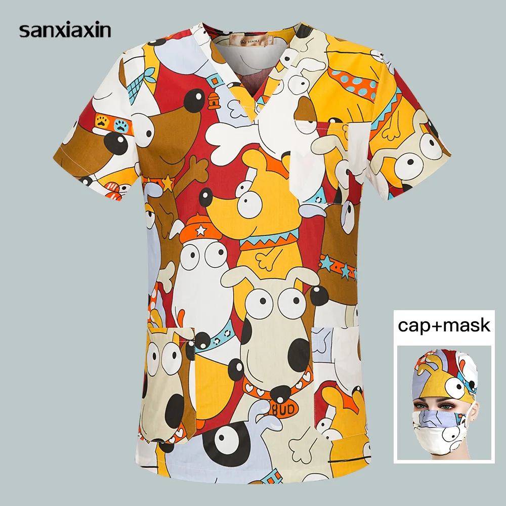 Кормящих скрабы медицинская Униформа стоматологии аптека рабочая одежда, принт с героями мультфильмов в стиле унисекс для домашних животных в больнице униформа для салонов красоты