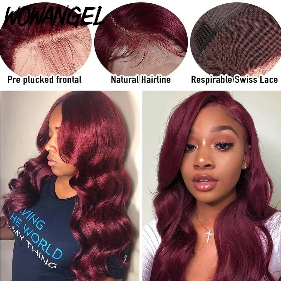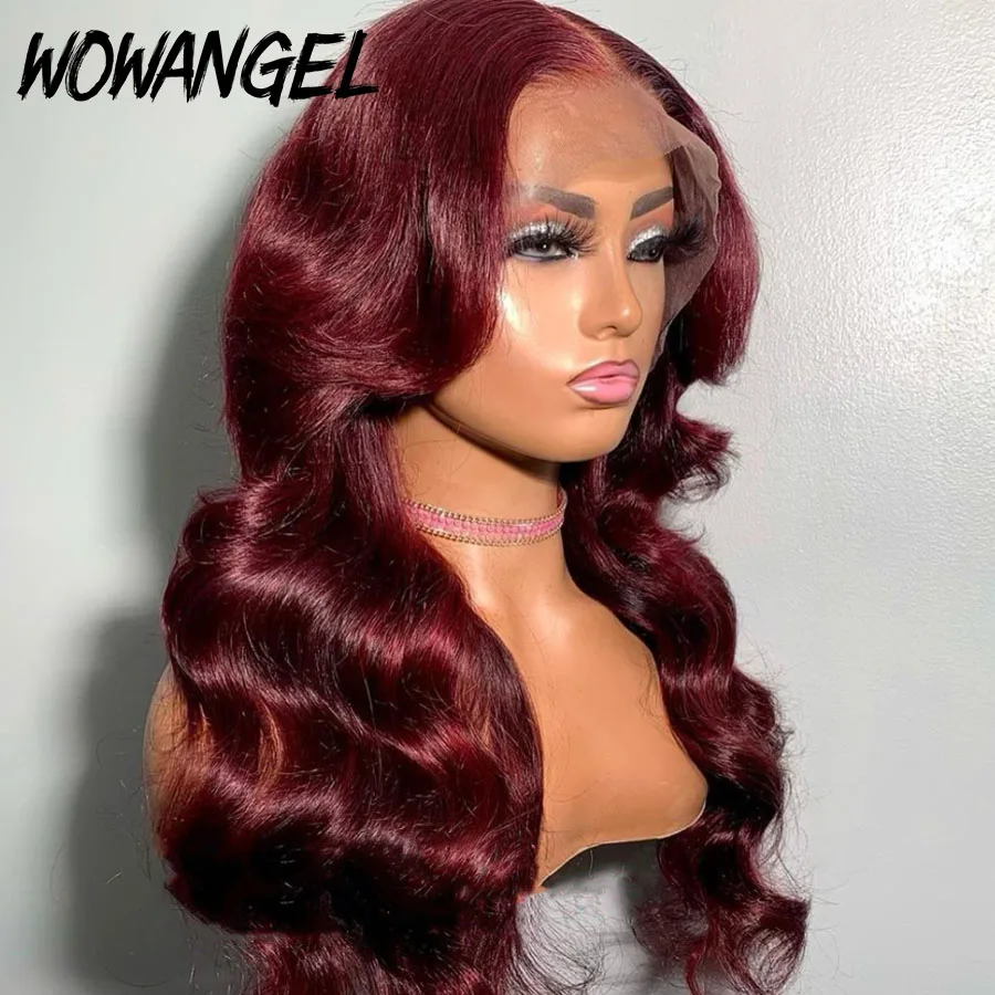13x4 глубокий часть из прозрачного кружева бордовый 99J Цветной бразильские волнистые волосы Синтетические волосы на кружеве парики из натуральных волос с Африканской структурой, Для женщин Remy Wowangel