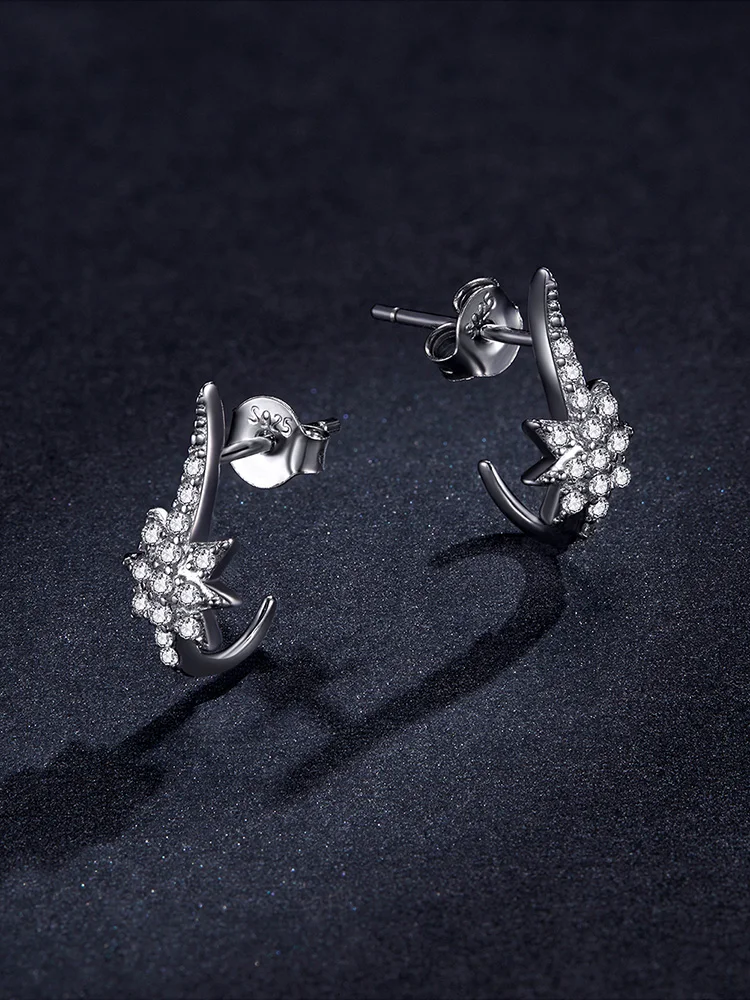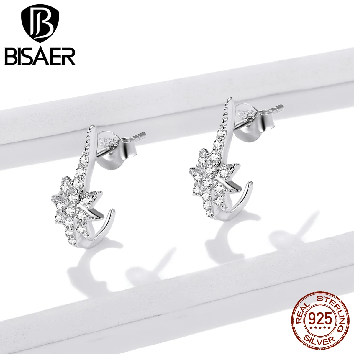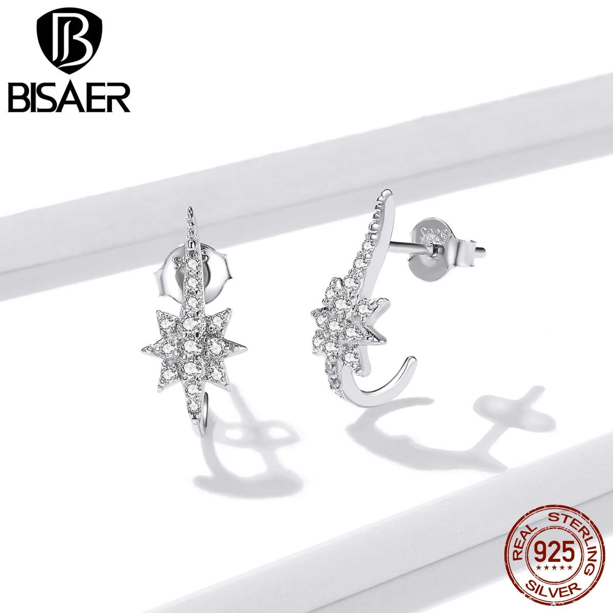 BISAER серьги Аутентичные 925 пробы серебро простой с блестящими звездами; Комплект из подходящих серьги-гвоздики из стерлингового серебра ювелирные украшения подарок EFE460