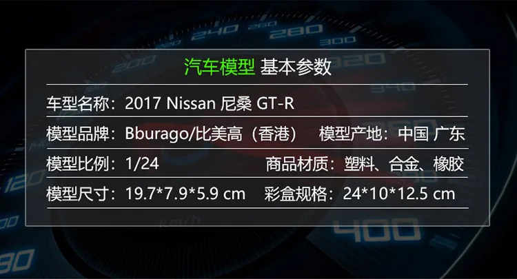 Модель автомобиля Nissan GTR металлическая, 1:24, 2017