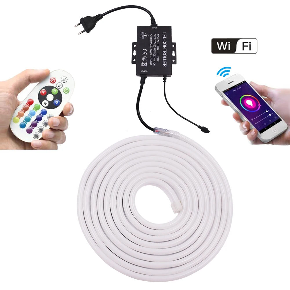Гибкая неоновая Светодиодная лента с поддержкой Wi-Fi, RGB, 220 В
