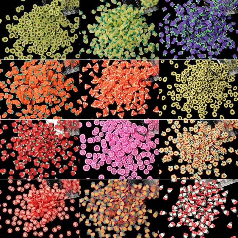 Nail Art 3D фрукты полимерные глиняные ломтики Slime хлопья авокадо Apple лимонного цвета с блестками для дизайна ногтей Гель-Маникюр Аксессуары для красоты