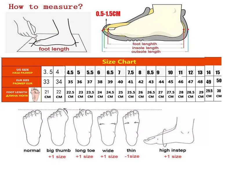 Примечание: 1. Размер США или европейский размер могут отличаться от размера вашей страны, пожалуйста, выбирайте размер только в соответствии с длиной Вашей стопы. 2. Если у вас толстая или широкая стопа, мы предлагаем вам выбрать на размер больше, если вы не уверены, пожалуйста, свяжитесь с нами. 3. Чтобы быстрее пройти таможню, мы упакуем обувь «без коробки», надеемся на понимание. 4. Пожалуйста, проверьте правильность информации о вашем заказе, включая имя получателя, адрес доставки, телефон и почтовый индекс. 5. Если возникнут какие-либо проблемы во время покупки, доставки или после получения товара, пожалуйста, свяжитесь с нами.