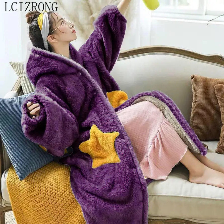 Зимнее одеяло для женщин, толстовка, Флисовое одеяло с рукавами, од...