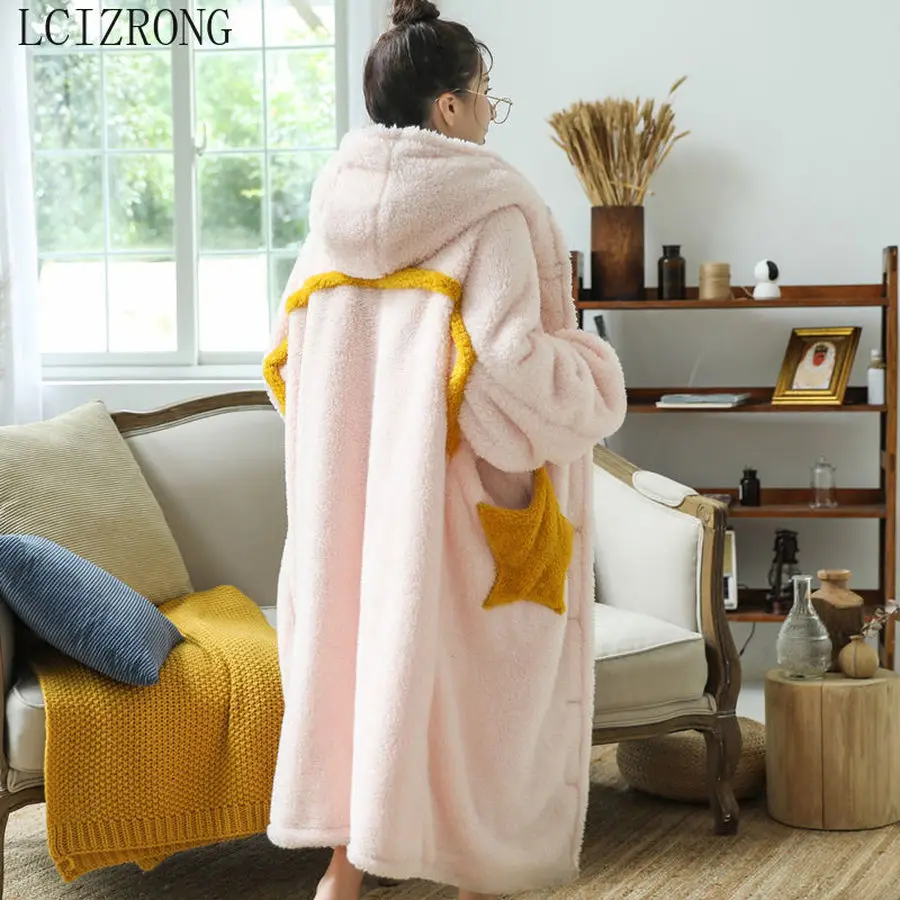 Женский фланелевый Халат, с капюшоном и длинным рукавом