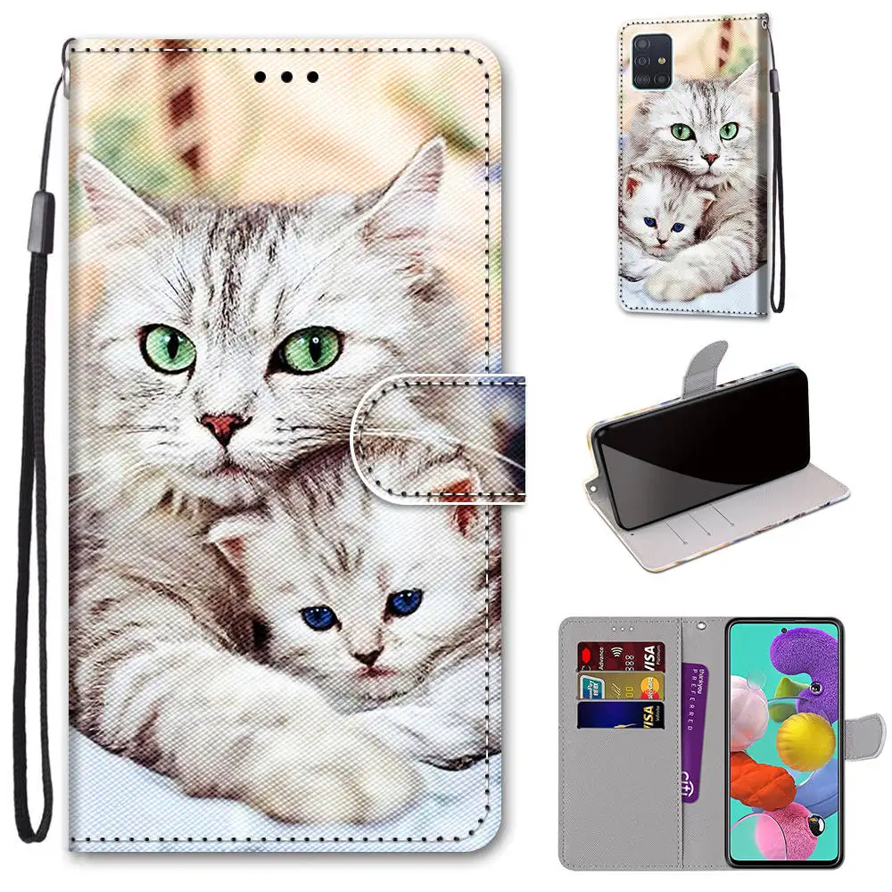 Animal Cat Flower Pattern Wallet Flip Cover For Samsung A11