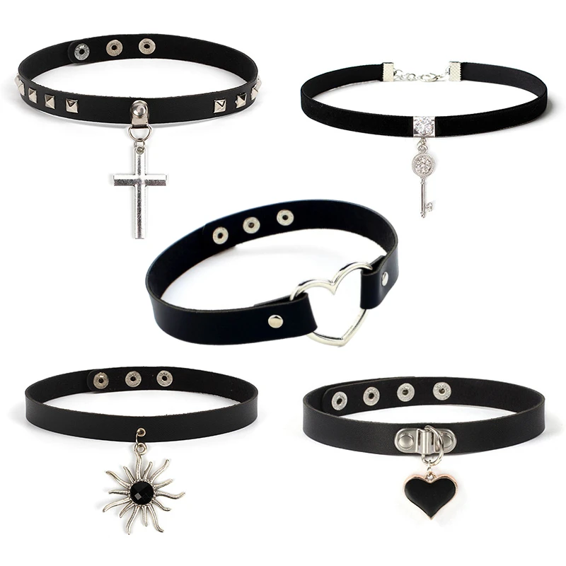 Женское Ожерелье-чокер из ПУ кожи, ожерелье с подвеской-крестом в форме сердца, колье в готическом стиле, массивное Ювелирное Украшение, 2019