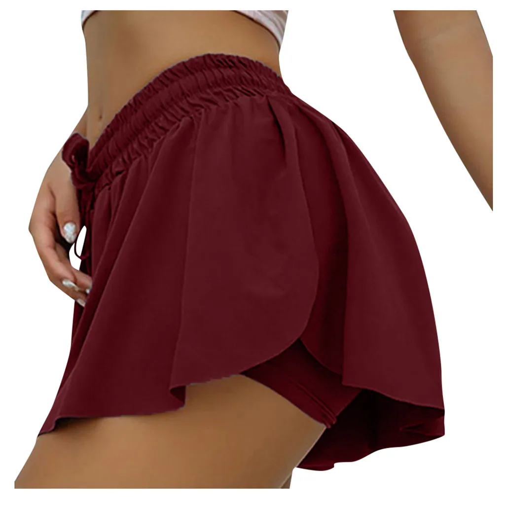 Шорты женские, двухслойные, спортивные, С Высокой Талией, для занятий йогой, фитнесом, Шорты С Высокой Талией @ 40