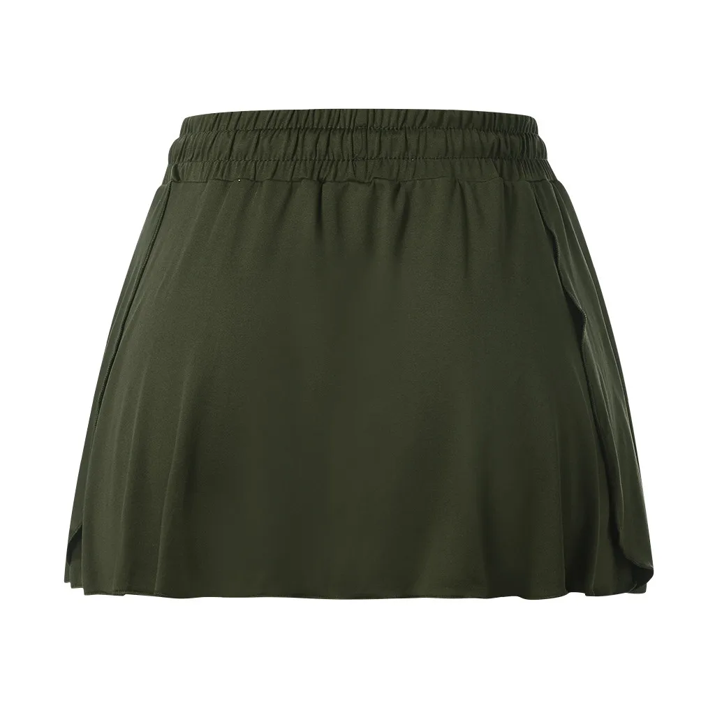Женская двухслойная Спортивная юбка 2 в 1, однотонная, с эластичной...
