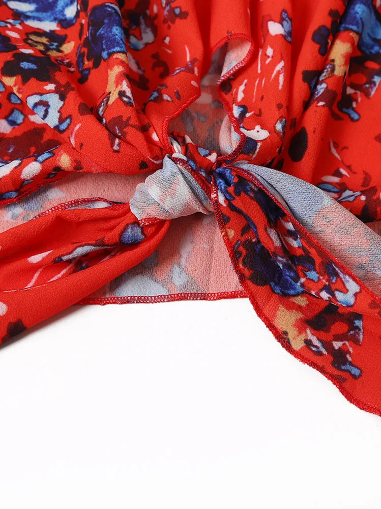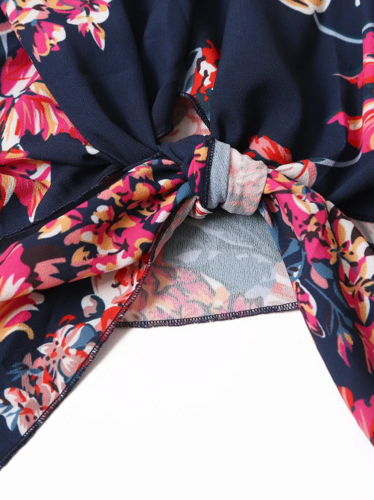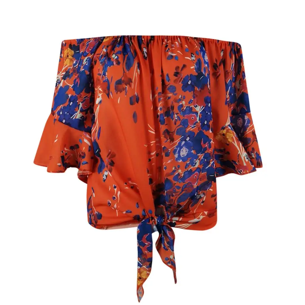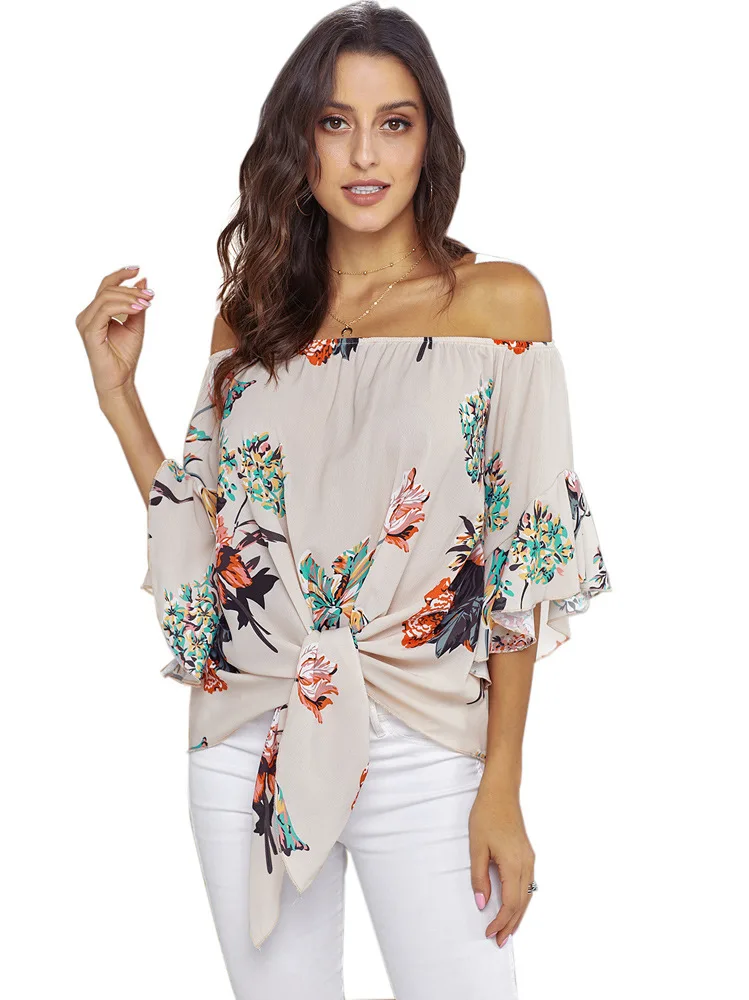 Блузка женская с открытыми плечами, пикантная рубашка с цветочным принтом, Повседневная Свободная блузка на шнуровке, размера плюс, на лето